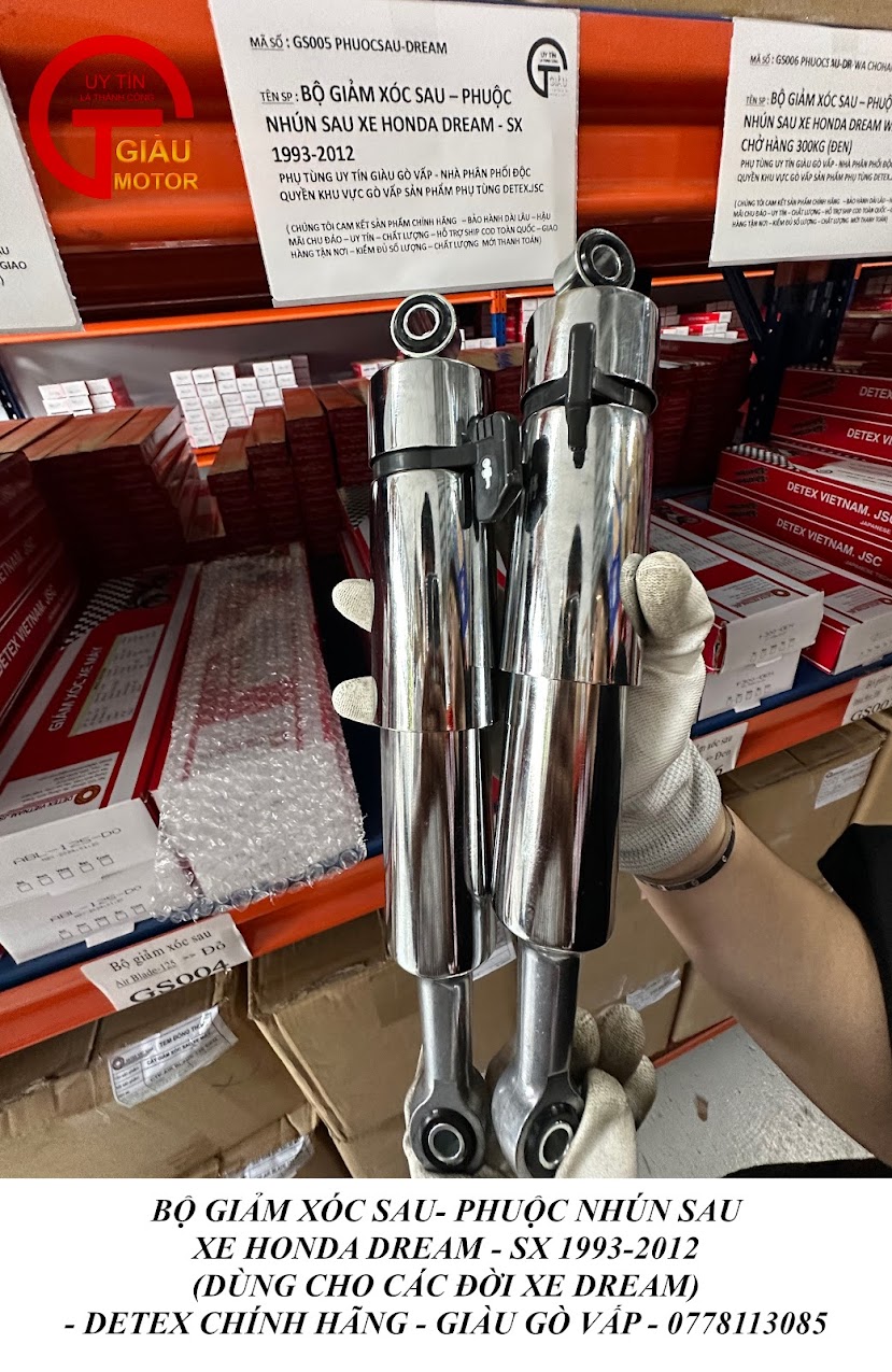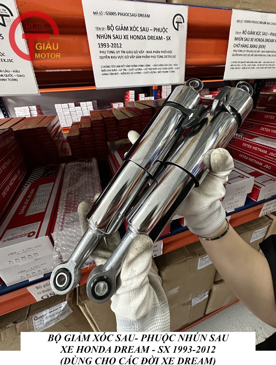 - Tại cửa hàng phụ tùng Giàu Gò Vấp, chúng tôi cung cấp phuộc giảm xóc sau xe Honda Dream hàng Detex,JSC chính hãng, giá rẻ.