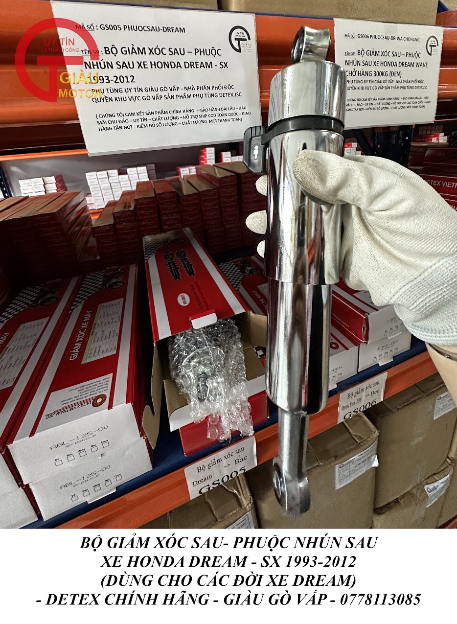- Qúy khách có thể mua sản phẩm phuộc giảm xóc sau xe Honda Dream hàng Detex chính hãng tại của hàng Phụ tùng Giàu Gò Vấp.