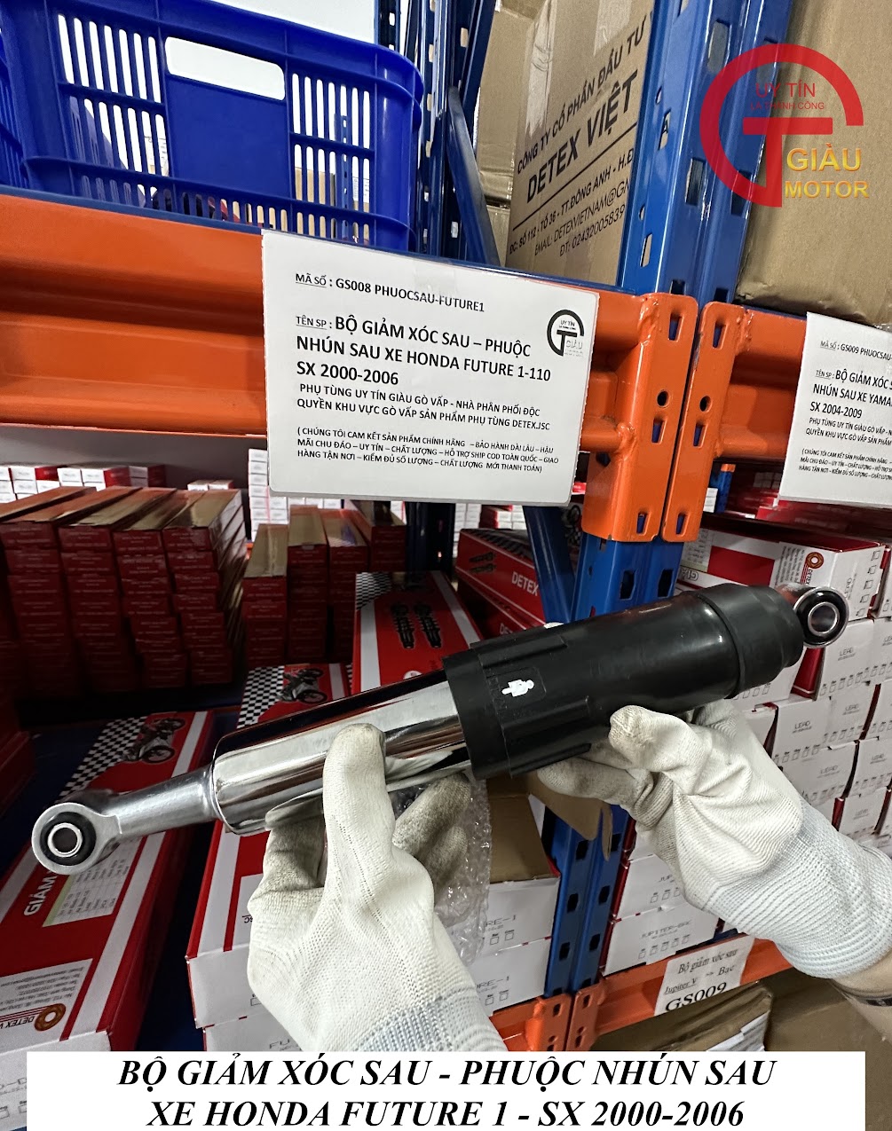 - Tại cửa hàng phụ tùng Giàu Gò Vấp, chúng tôi cung cấp phuộc giảm xóc sau xe Honda Future 1 hàng Detex,JSC chính hãng, giá rẻ.