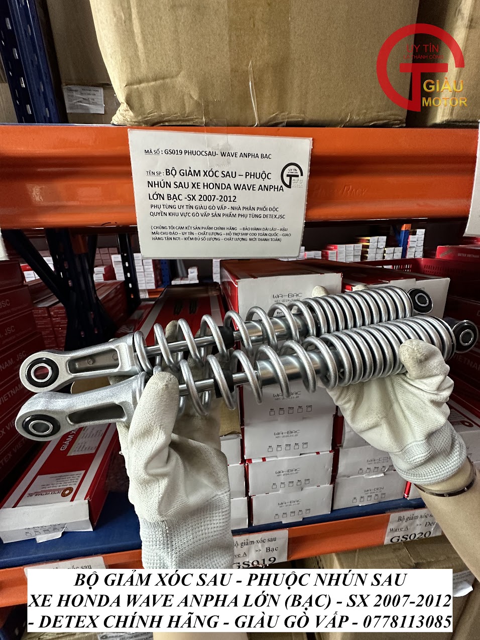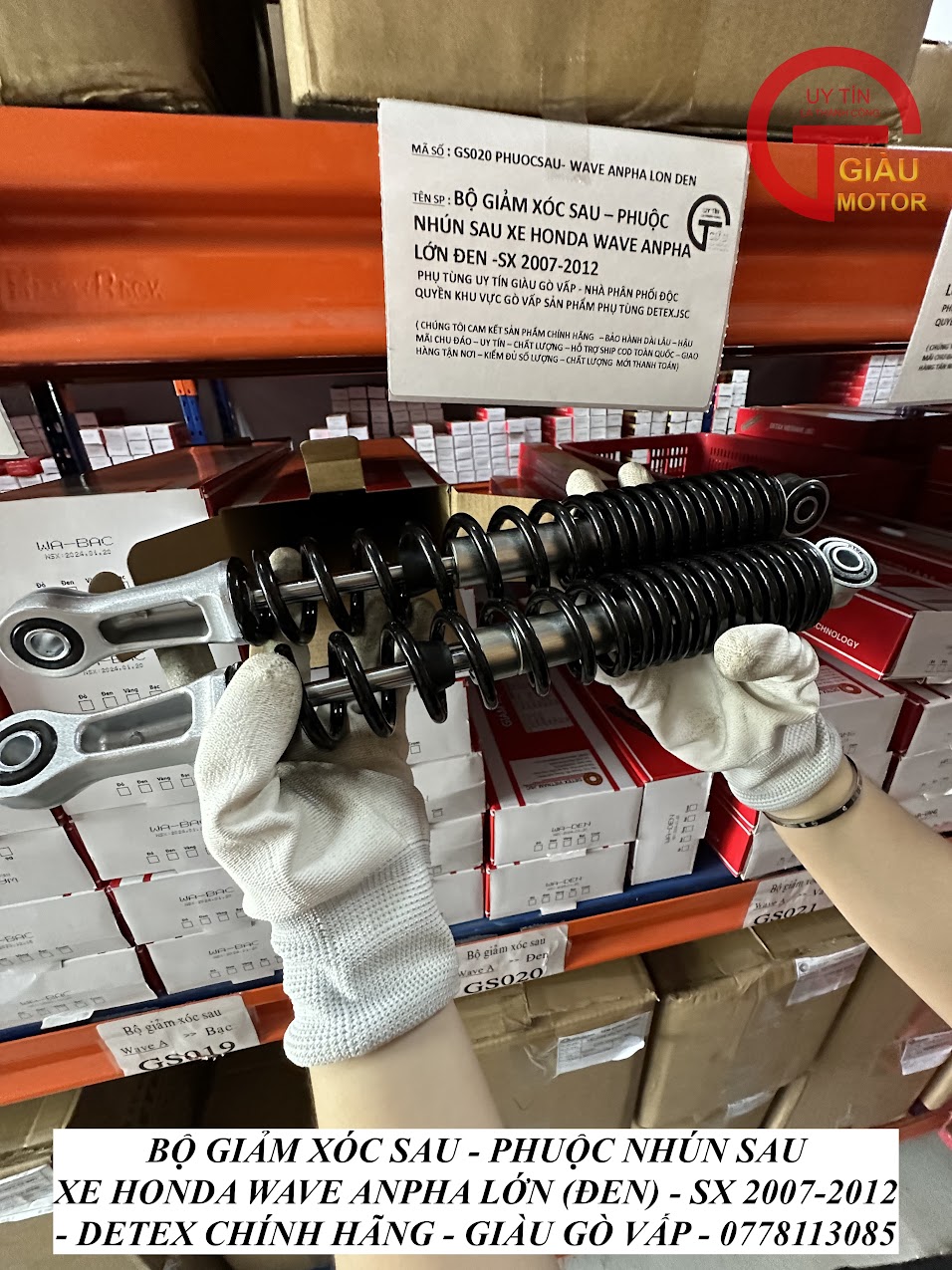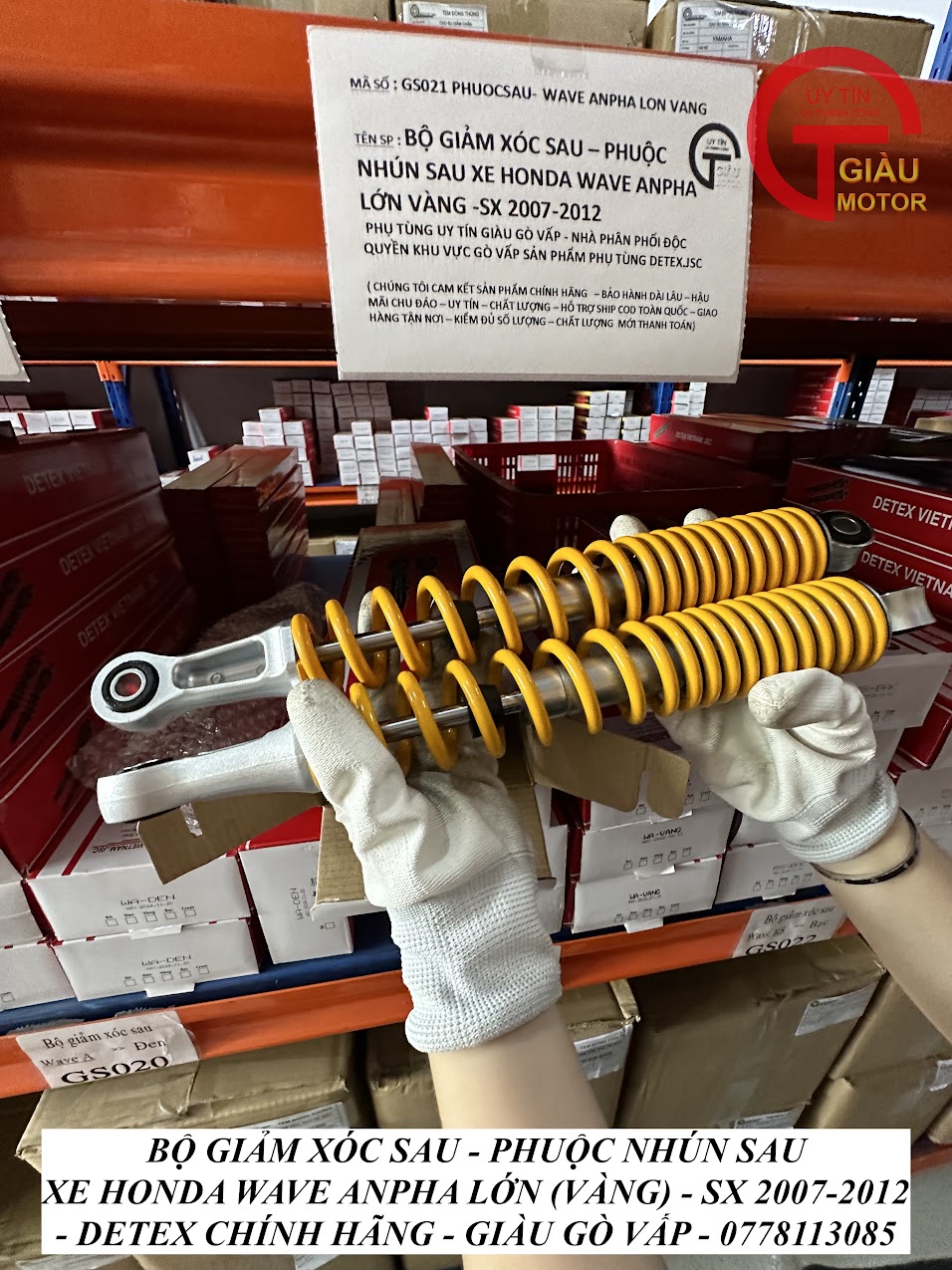- Qúy khách có thể mua sản phẩm phuộc giảm xóc sau xe Honda Wave A hàng Detex chính hãng tại của hàng Phụ tùng Giàu Gò Vấp.