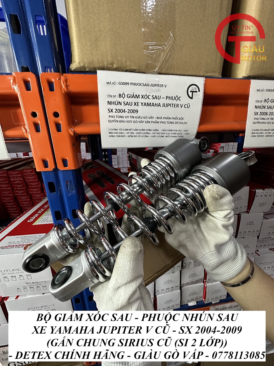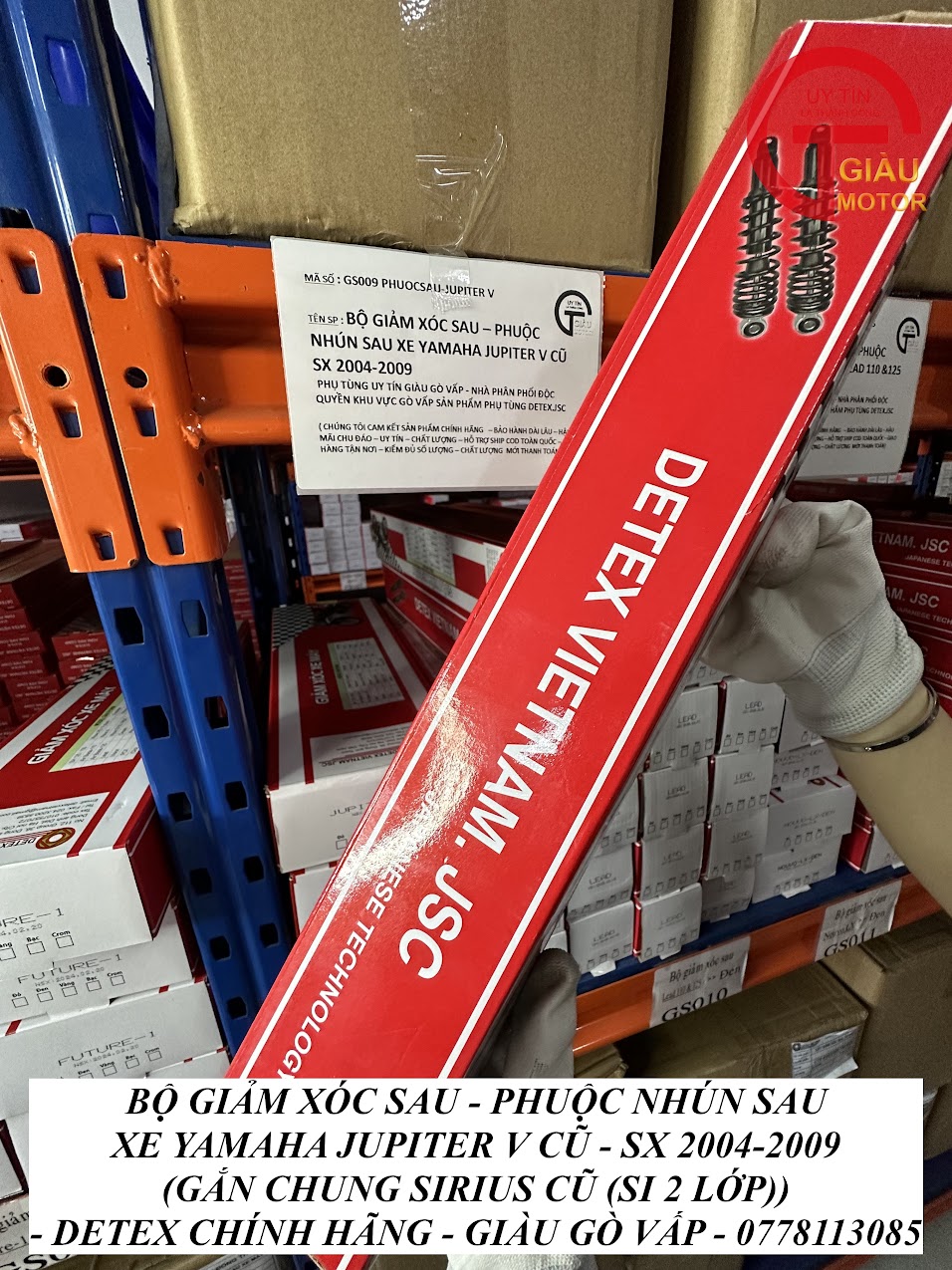 - Tại cửa hàng phụ tùng Giàu Gò Vấp, chúng tôi cung cấp phuộc giảm xóc sau xe Yamaha Jupiter V hàng Detex.JSC chính hãng, giá rẻ.