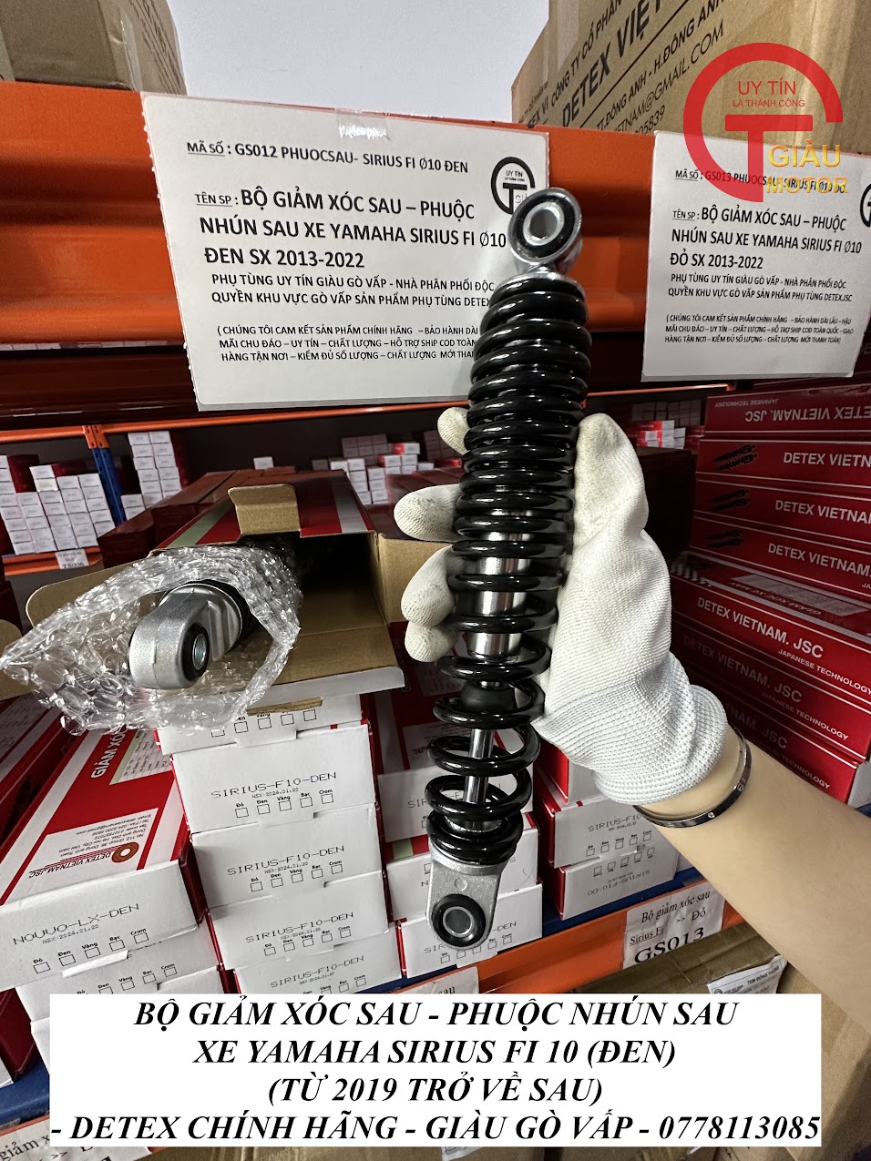 - Tại cửa hàng phụ tùng Giàu Gò Vấp, chúng tôi cung cấp phuộc giảm xóc sau xe Yamaha Sirius Fi 10 hàng Detex.JSC chính hãng, giá rẻ.