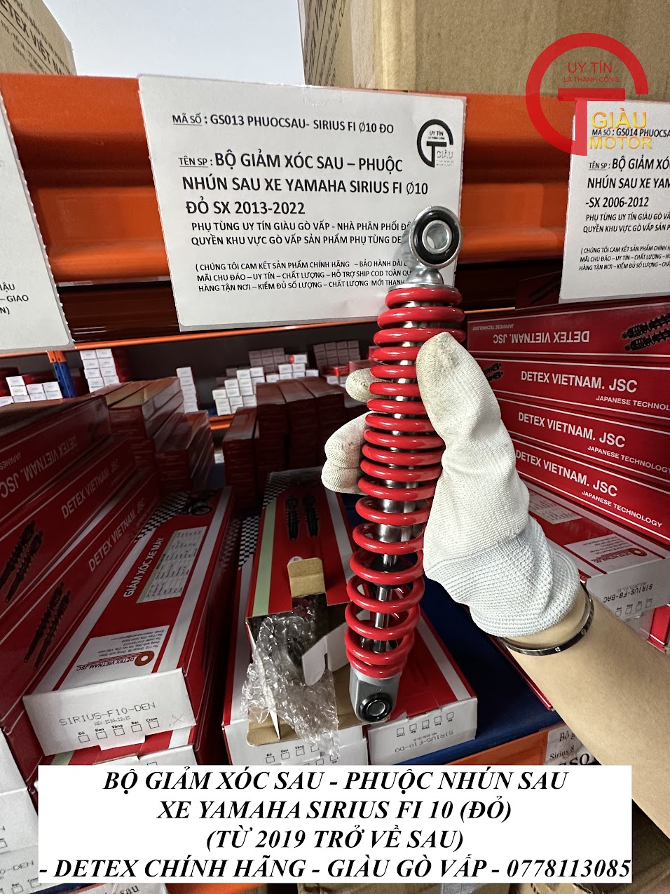 - Qúy khách có thể mua sản phẩm phuộc giảm xóc sau xe Yamaha Sirius Fi 10 hàng Detex chính hãng tại của hàng Phụ tùng Giàu Gò Vấp.