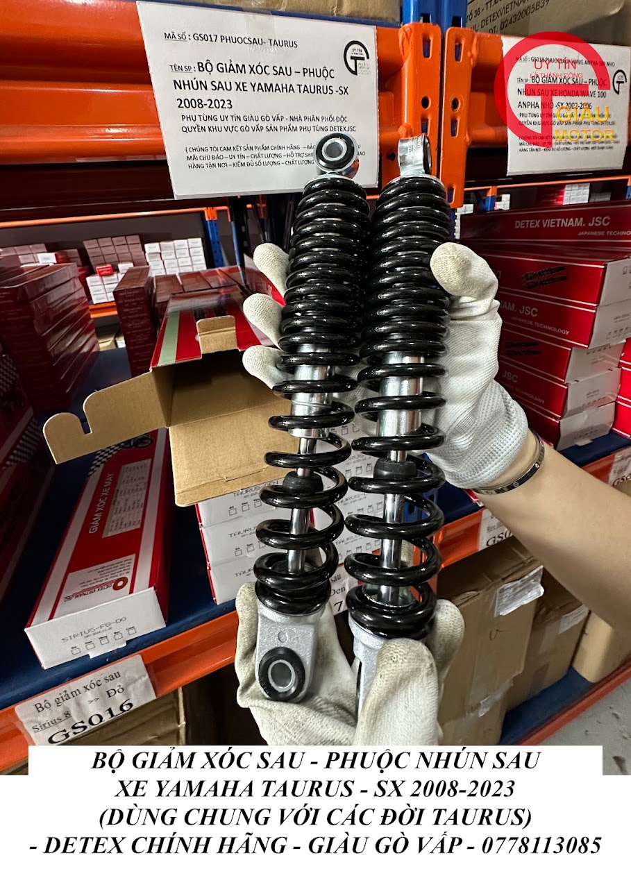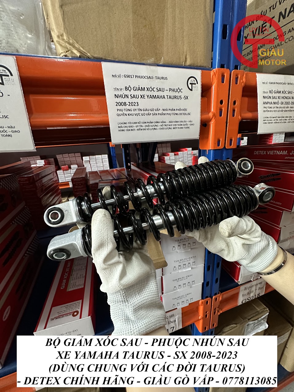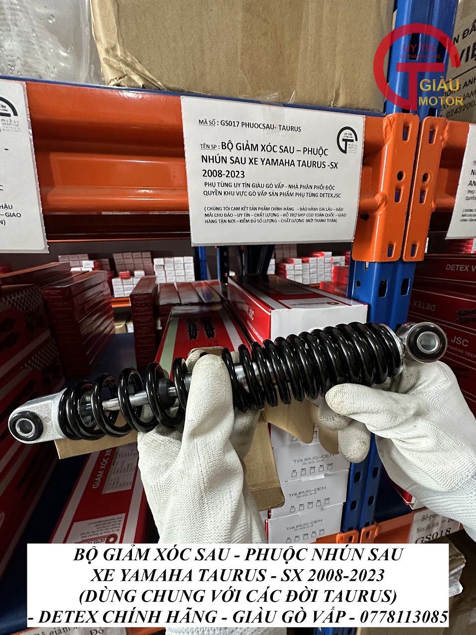 - Tại cửa hàng phụ tùng Giàu Gò Vấp, chúng tôi cung cấp phuộc giảm xóc sau xe Yamaha Taurus hàng Detex.JSC chính hãng, giá rẻ.