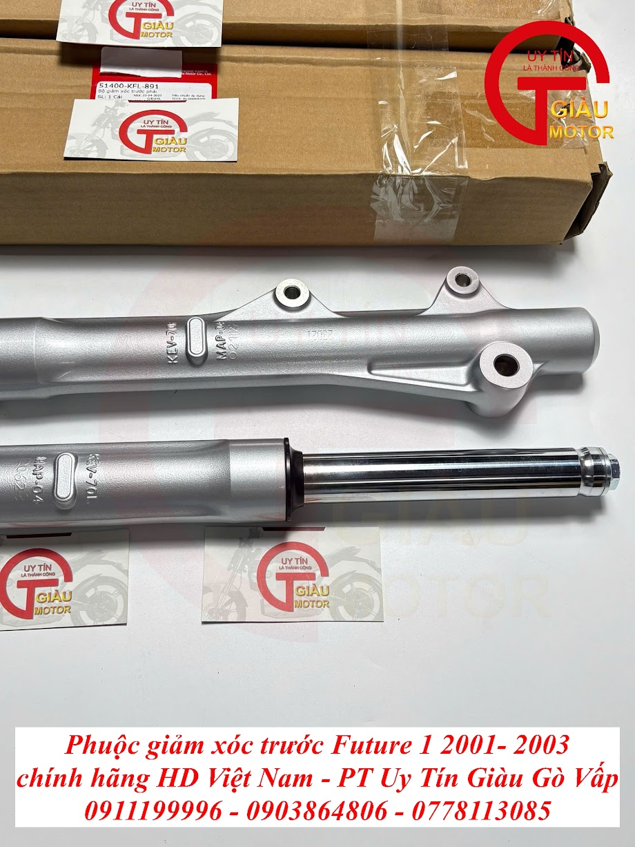Đừng để chiếc xe Future 1 của bạn mất đi sự an toàn, êm ái và giá trị vốn có vì phuộc đã xuống cấp. Hãy đến ngay Giàu Gò Vấp để trang bị Phuộc Giảm Xóc Trước Chính Hãng và tận hưởng cảm giác lái xe mượt mà, an toàn và hoàn hảo hơn bao giờ hết!