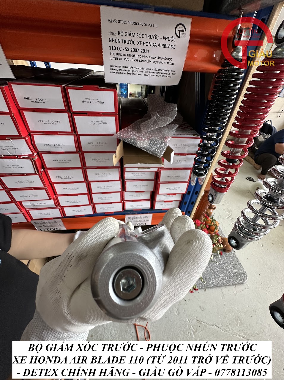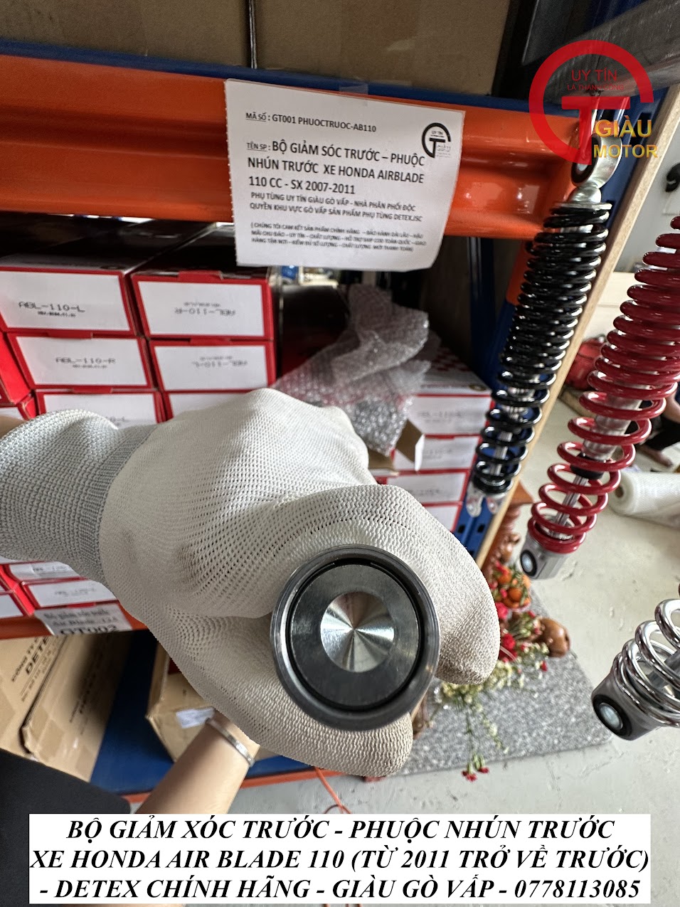 - Qúy khách có thể mua sản phẩm phuộc giảm xóc sau xe honda Air Blade 110 hàng Detex chính hãng tại của hàng Phụ tùng Giàu Gò Vấp.