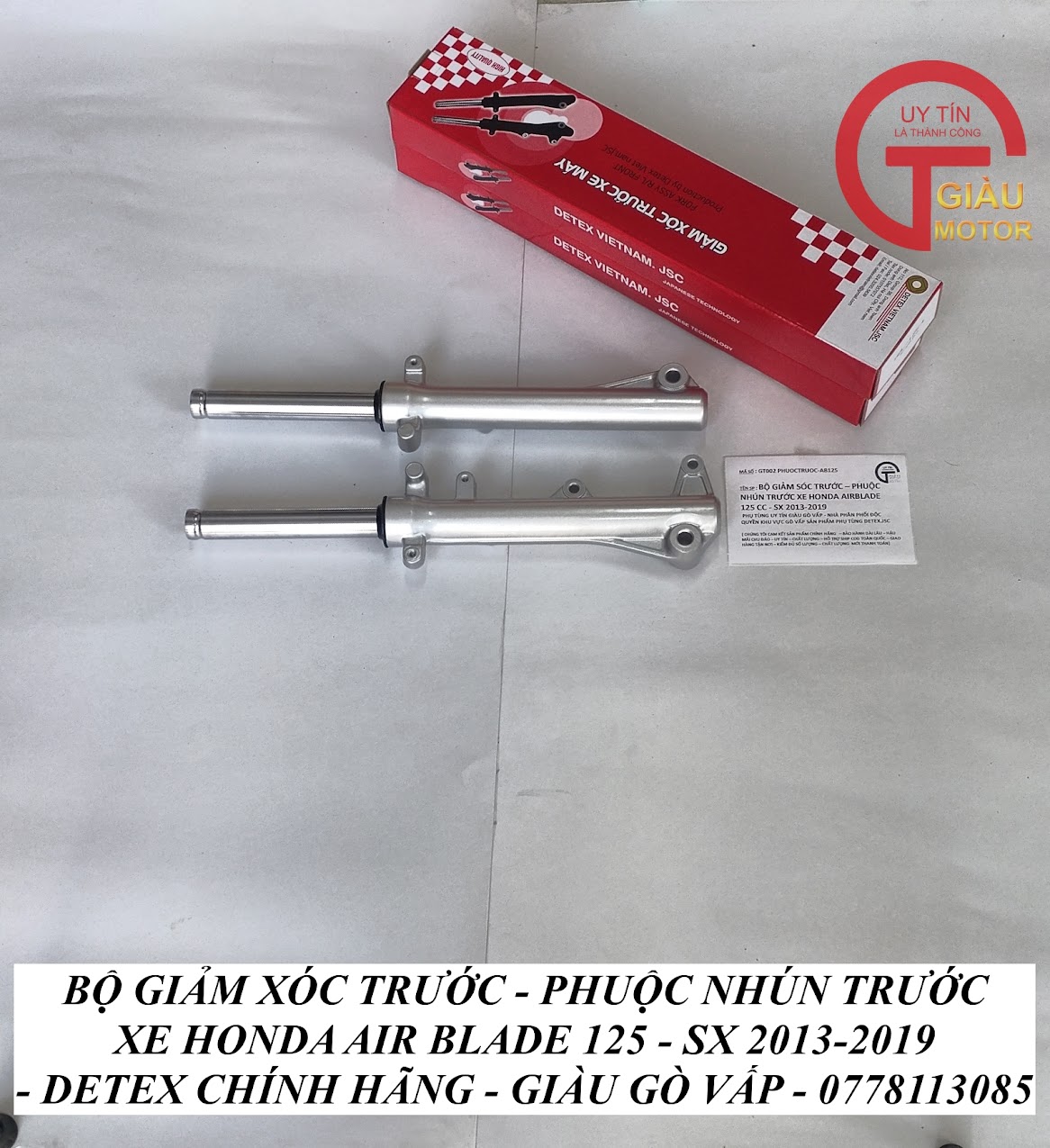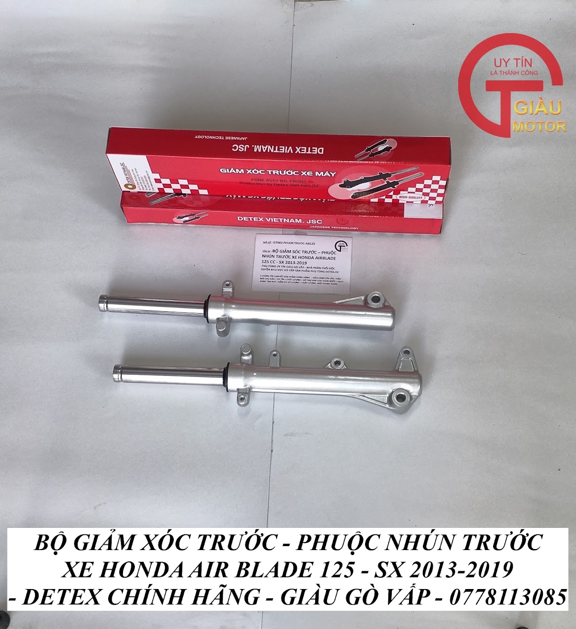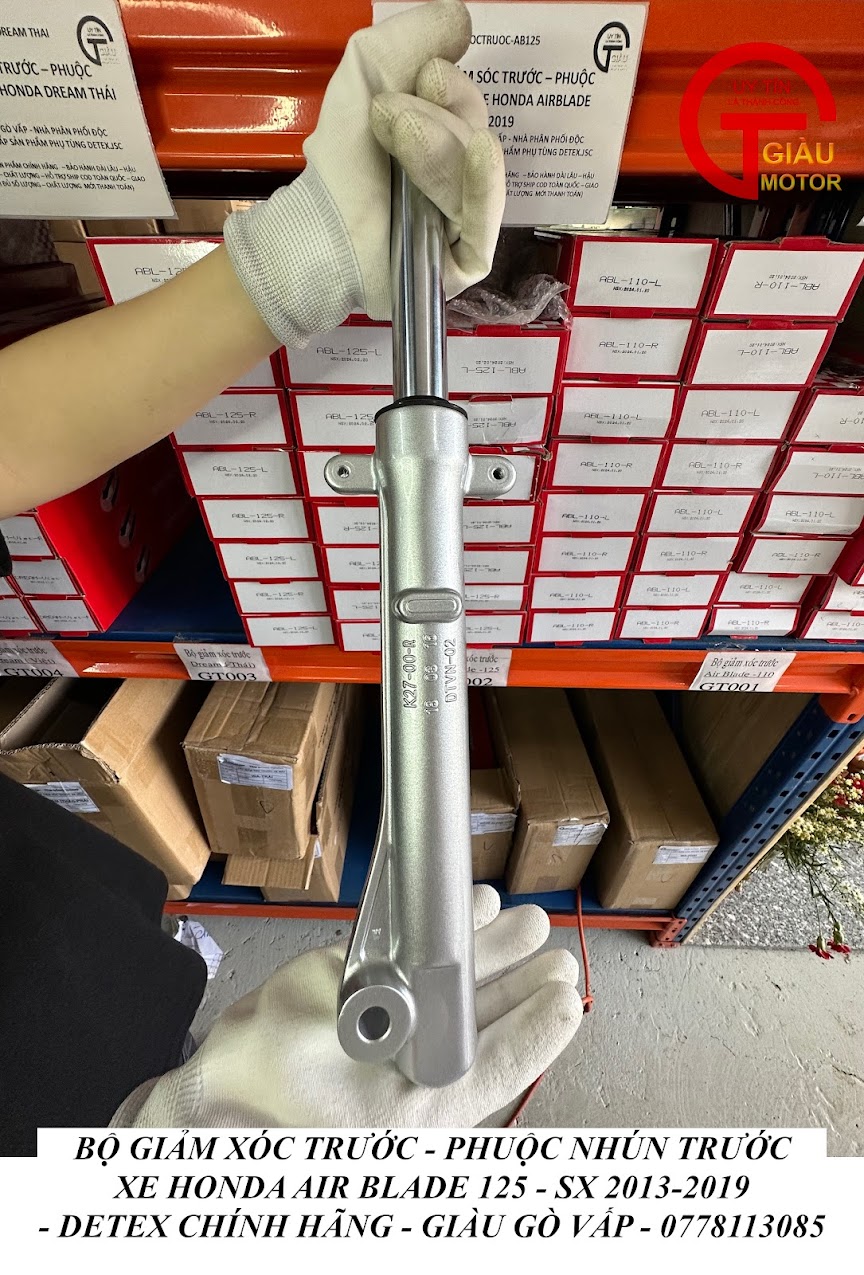 - Qúy khách có thể mua sản phẩm phuộc giảm xóc trước xe Honda Air Blade 125 hàng Detex chính hãng tại của hàng Phụ tùng Giàu Gò Vấp.