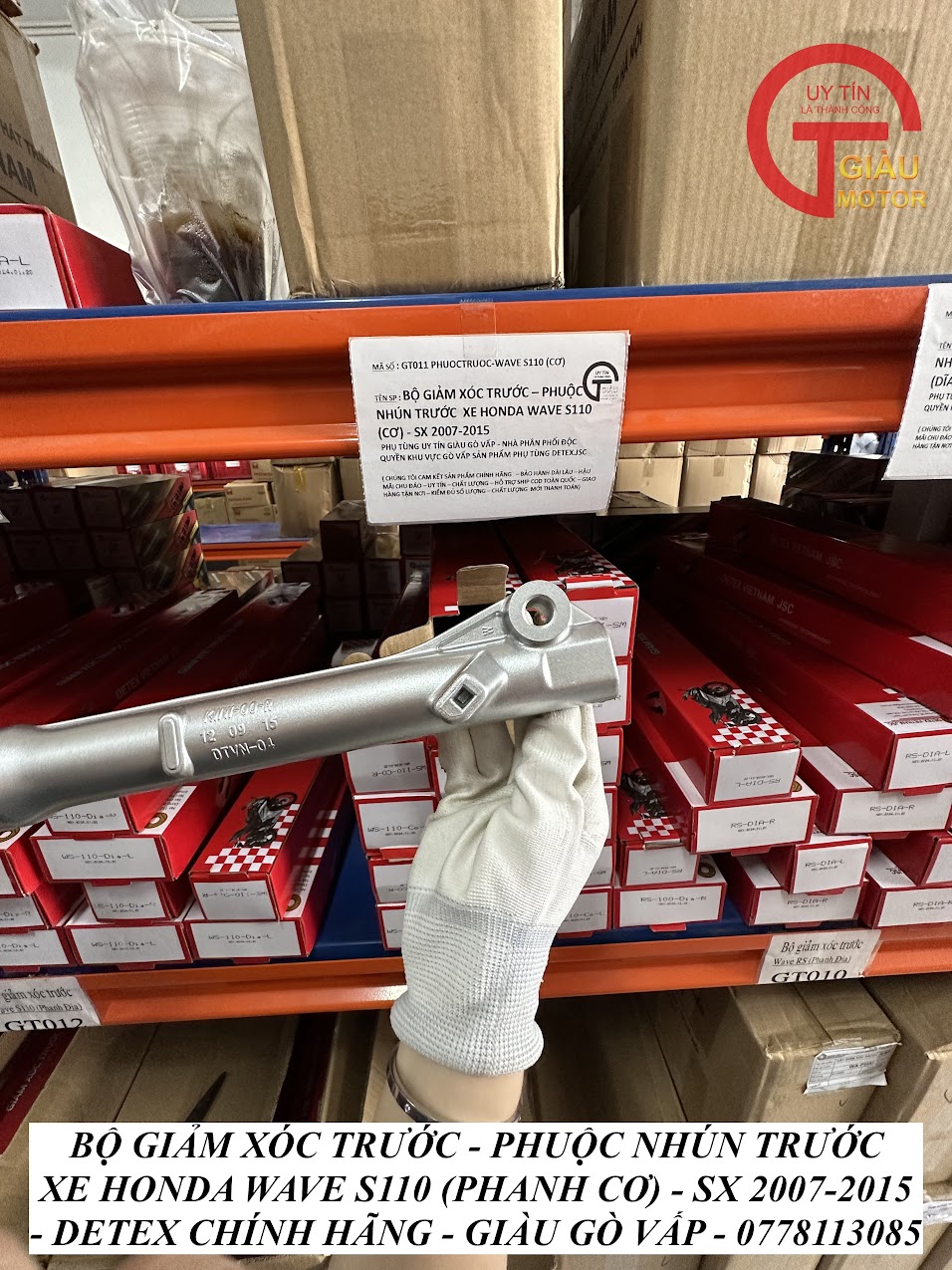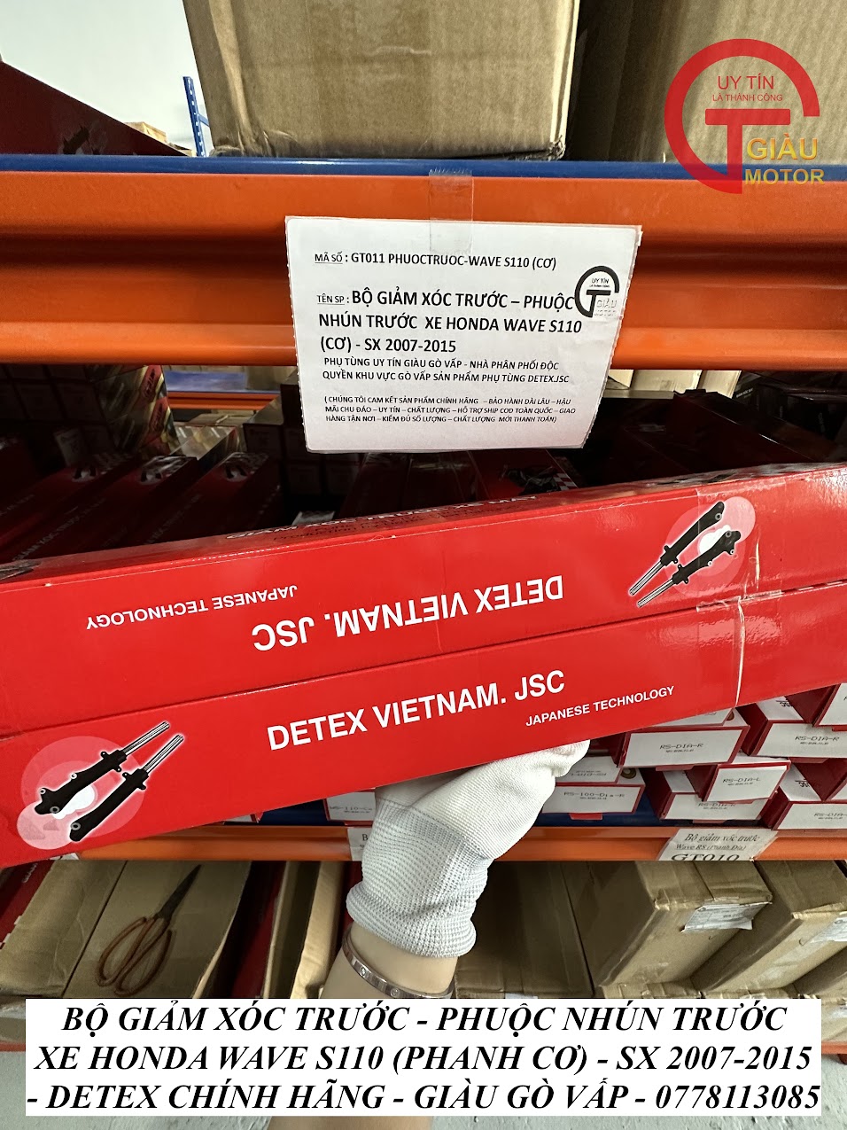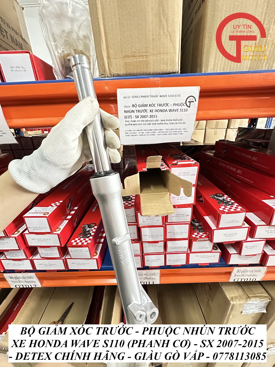 - Qúy khách có thể mua sản phẩm phuộc giảm xóc trước xe Honda Wave S110 (phanh cơ) hàng Detex chính hãng tại của hàng Phụ tùng Giàu Gò Vấp.