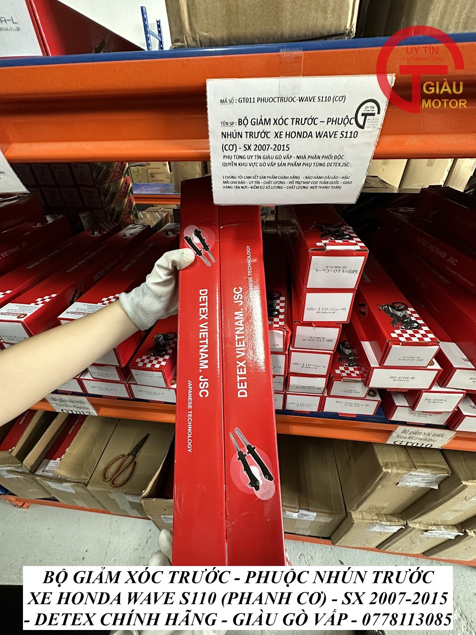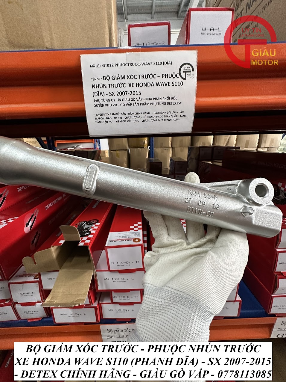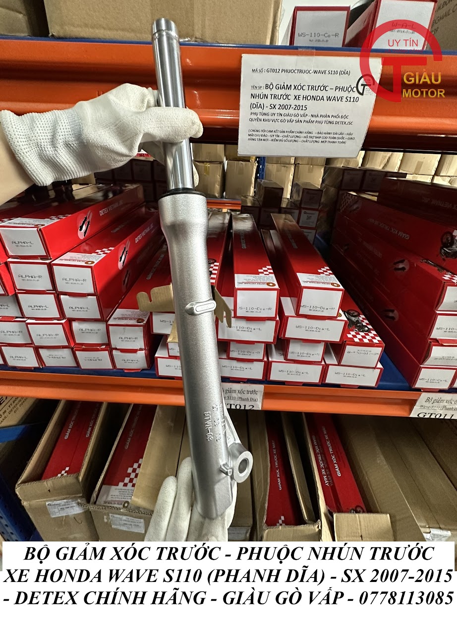 - Qúy khách có thể mua sản phẩm phuộc giảm xóc trước xe Honda Wave S110 (phanh đĩa) hàng Detex chính hãng tại của hàng Phụ tùng Giàu Gò Vấp.