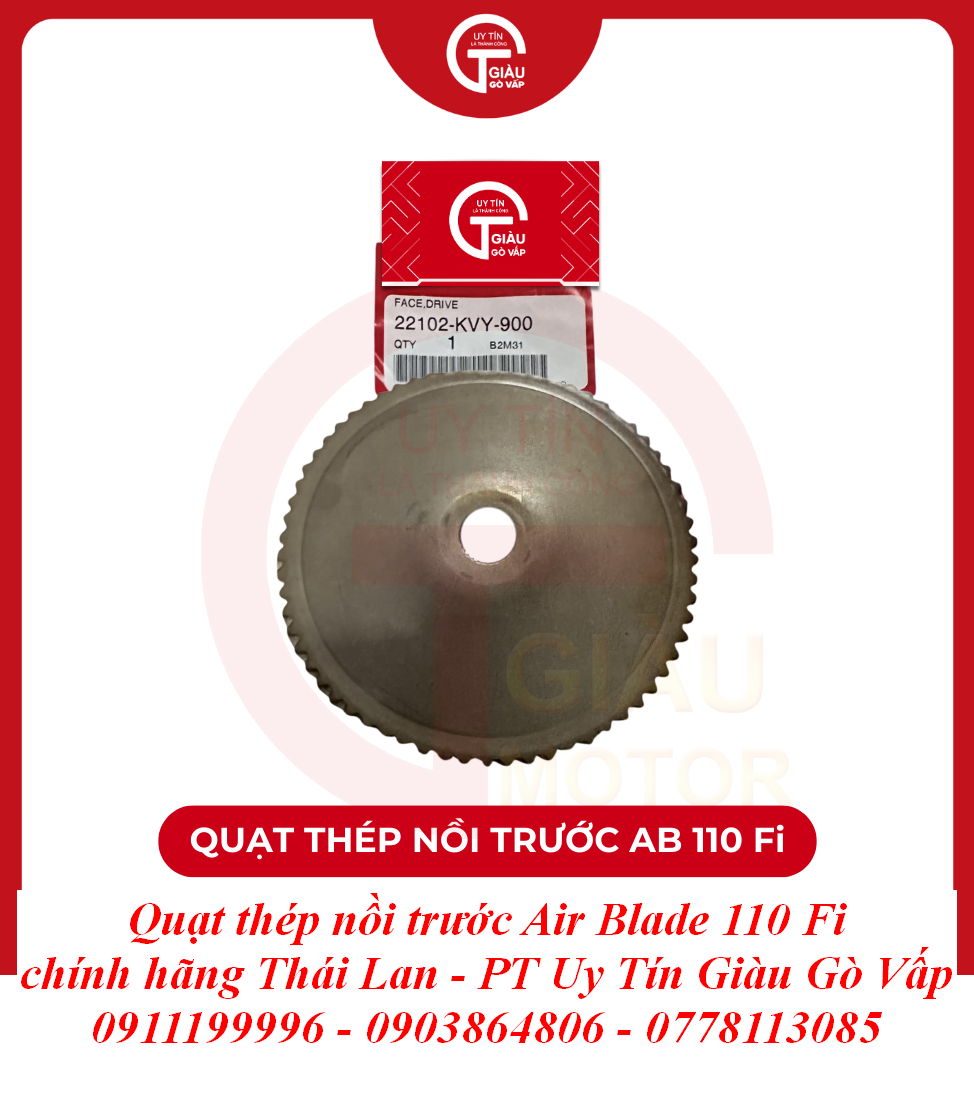 Giàu Gò Vấp là địa chỉ uy tín được cộng đồng người chơi xe Air Blade và người dùng xe máy lâu năm tại TP. Hồ Chí Minh tin tưởng. Chúng tôi cam kết mang đến cho bạn sản phẩm Quạt Thép Nồi Trước Air Blade 110 Fi Chính Hãng Thái Lan với: