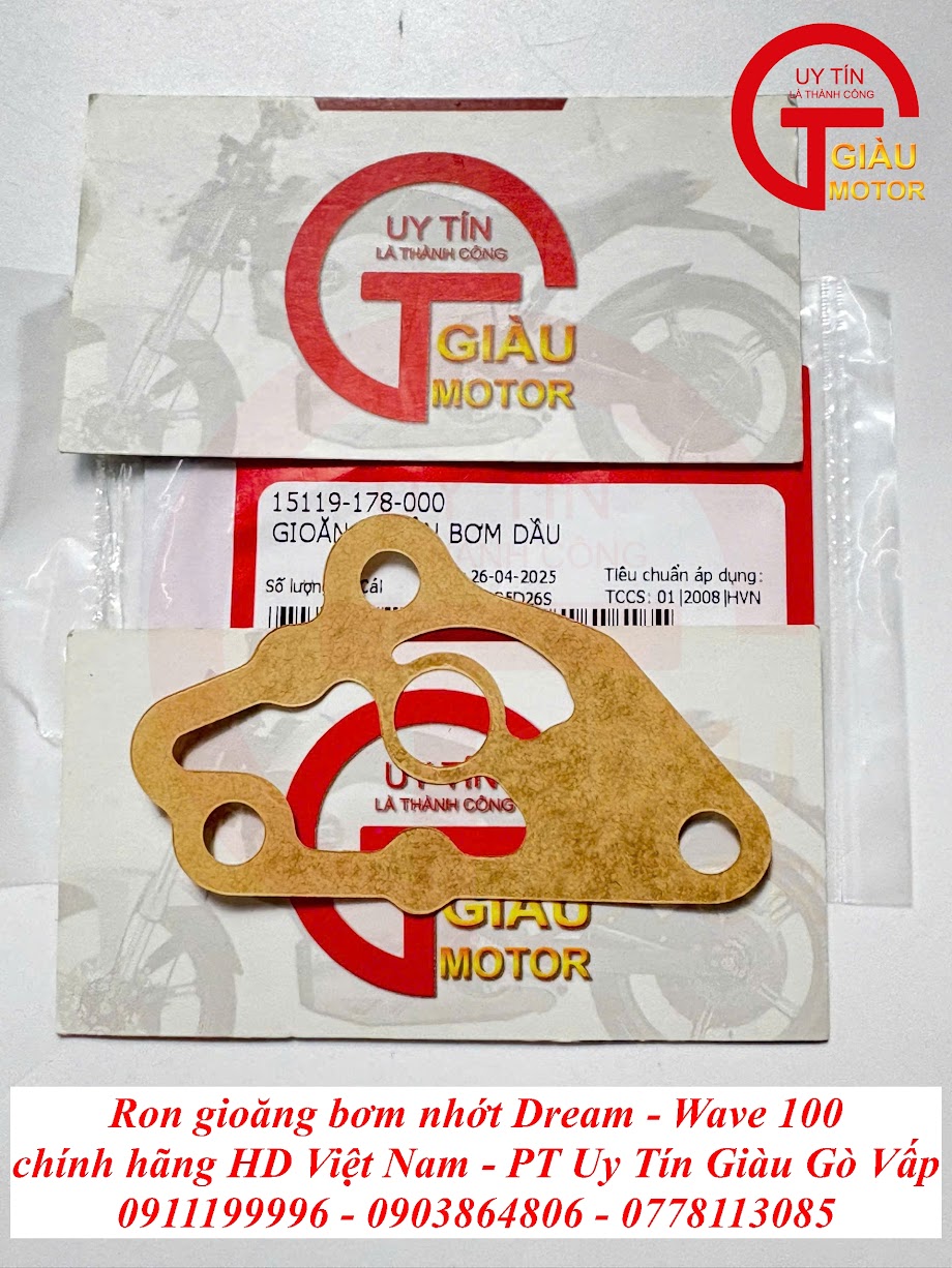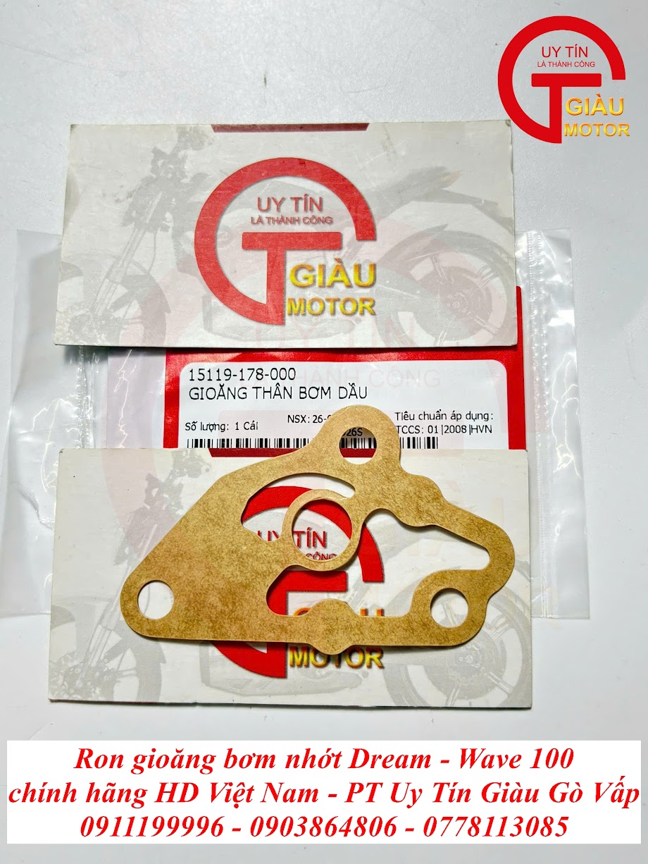 Đừng để chiếc Dream hay Wave 100 của bạn bị rò rỉ nhớt hay hư hỏng động cơ vì ron gioăng bơm nhớt đã xuống cấp. Hãy đến ngay Giàu Gò Vấp để trang bị Ron Gioăng Bơm Nhớt Dream - Wave 100 Chính Hãng và tận hưởng cảm giác lái xe êm ái, bền bỉ và an tâm hơn bao giờ hết!
