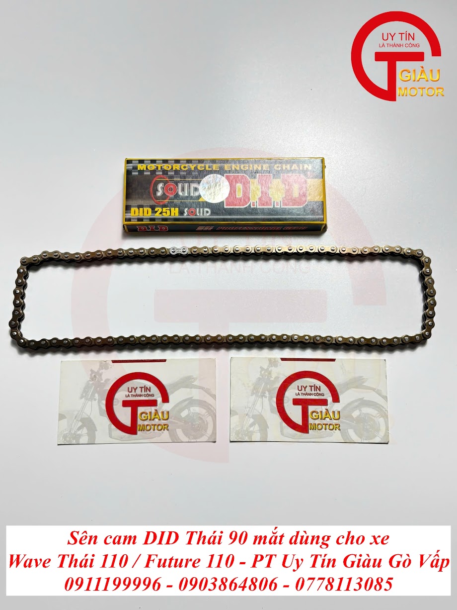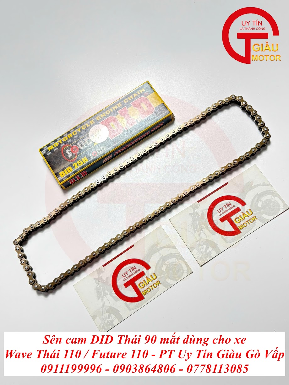 Đừng để tiếng kêu lạ hay hiệu suất động cơ suy giảm làm mất đi giá trị và trải nghiệm của chiếc xe yêu quý! Hãy đến ngay Giàu Gò Vấp – cửa hàng phụ tùng xe máy uy tín hàng đầu tại TP. Hồ Chí Minh, chuyên cung cấp Sên Cam DID Thái 90 Mắt Dùng Cho Xe Wave Thái 110 - Future 110 Chính Hãng. Chúng tôi cam kết mang lại sự êm ái, mạnh mẽ và bền bỉ chuẩn "zin" Thái cho động cơ "xế cưng" của bạn!