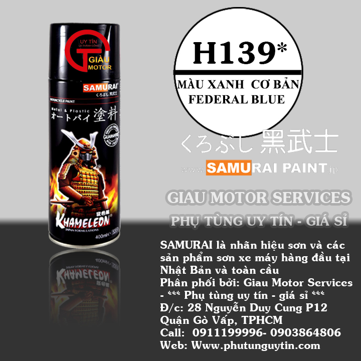 H139 _ Chai sơn xịt sơn xe máy Samurai H139 màu xanh cơ bản Honda _ Federal Blue _shop uy tín _giao hàng nhanh _ giá rẻ