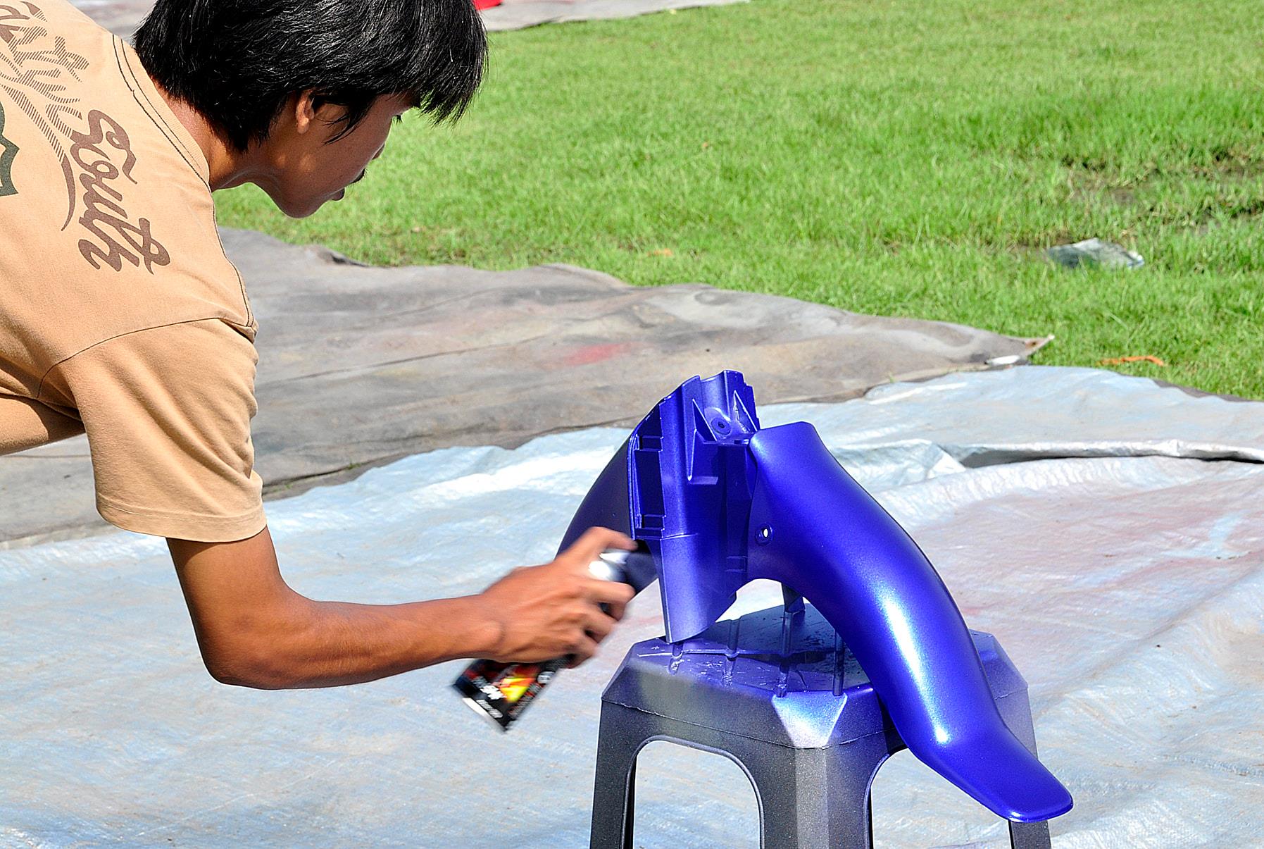 Bước 5 : Sơn 2-3 lớp mỏng màu Xanh Dương S137*, mỗi lớp cách nhau 3-5 phút (hoặc lâu hơn tùy vào điều kiện thời tiết)
