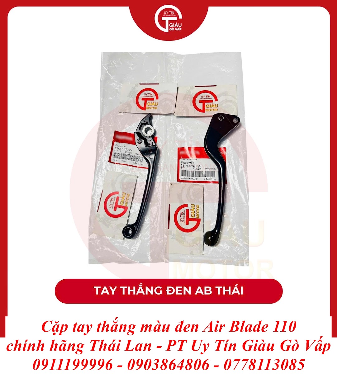 Giàu Gò Vấp là địa chỉ uy tín được cộng đồng người chơi xe Air Blade và người dùng xe máy lâu năm tại TP. Hồ Chí Minh tin tưởng. Chúng tôi cam kết mang đến cho bạn sản phẩm Tay Thắng Air Blade 110 Màu Đen Chính Hãng Thái Lan với: