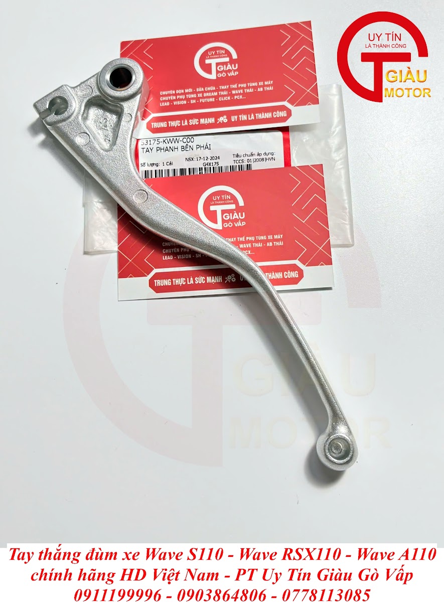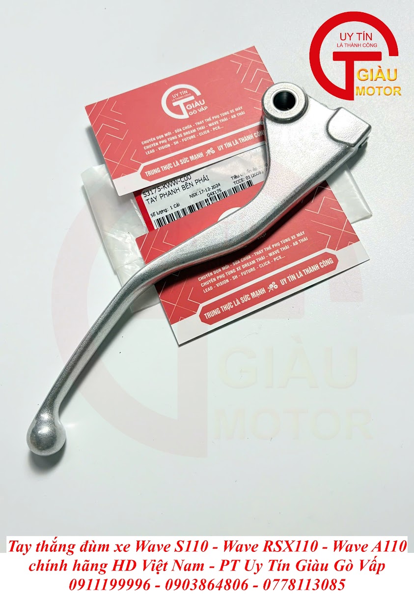 Đừng để những vấn đề này làm giảm đi sự an toàn và giá trị của chiếc xe bạn! Hãy đến ngay Giàu Gò Vấp – cửa hàng phụ tùng xe máy uy tín hàng đầu tại TP. Hồ Chí Minh, chuyên cung cấp Tay Thắng Đùm Wave S110 - Wave RSX110 - Wave A110 Chính Hãng. Chúng tôi cam kết mang lại khả năng phanh an toàn tuyệt đối, độ bền bỉ đáng kinh ngạc và giá tốt nhất!