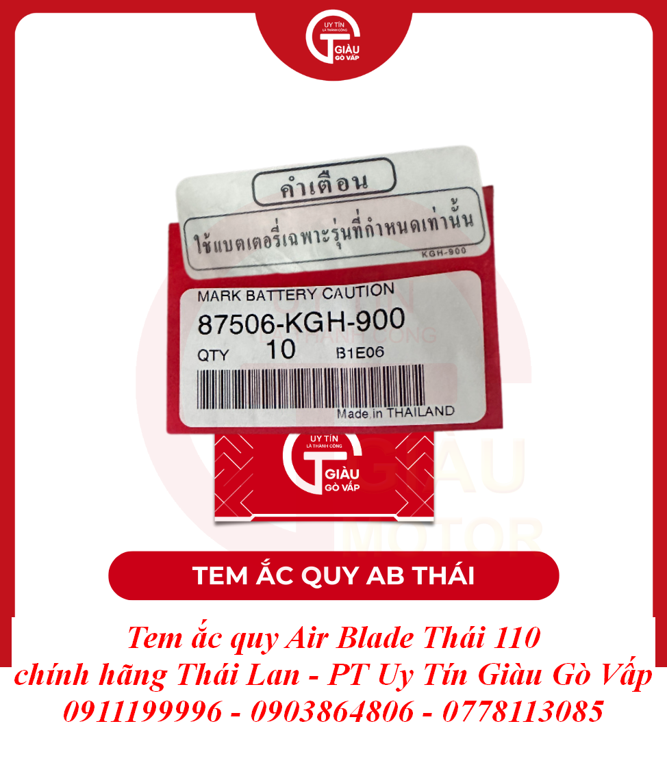 Tem Ắc Quy Air Blade Thái Chính Hãng - Mua Ngay Tại Cửa Hàng Giàu Gò Vấp Để Bảo Vệ Xe Bạn Tốt Nhất!