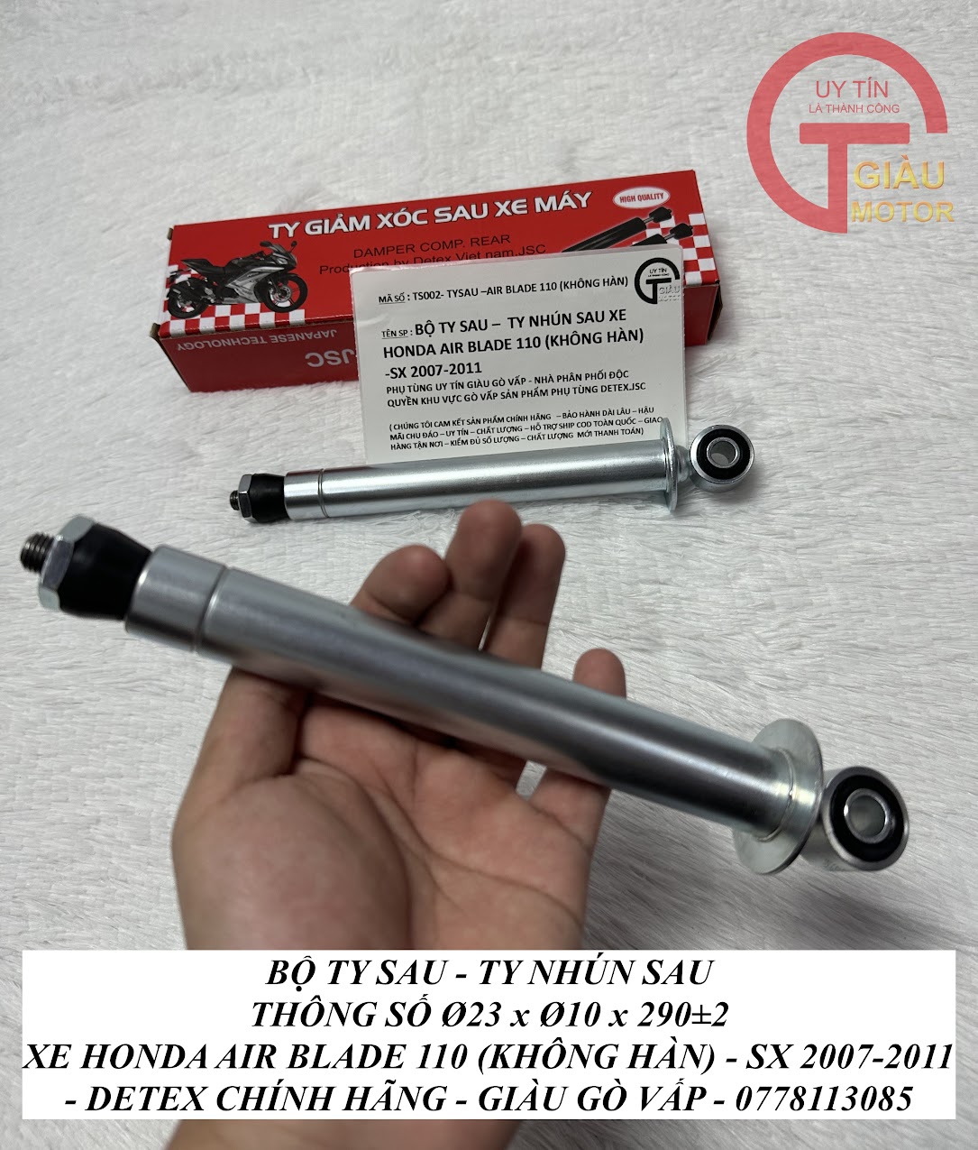 - Tại cửa hàng phụ tùng Giàu Gò Vấp, chúng tôi cung cấp ty phuộc nhún giảm xóc sau xe Honda Air Blade 110 hàng Detex.JSC chính hãng, giá rẻ.