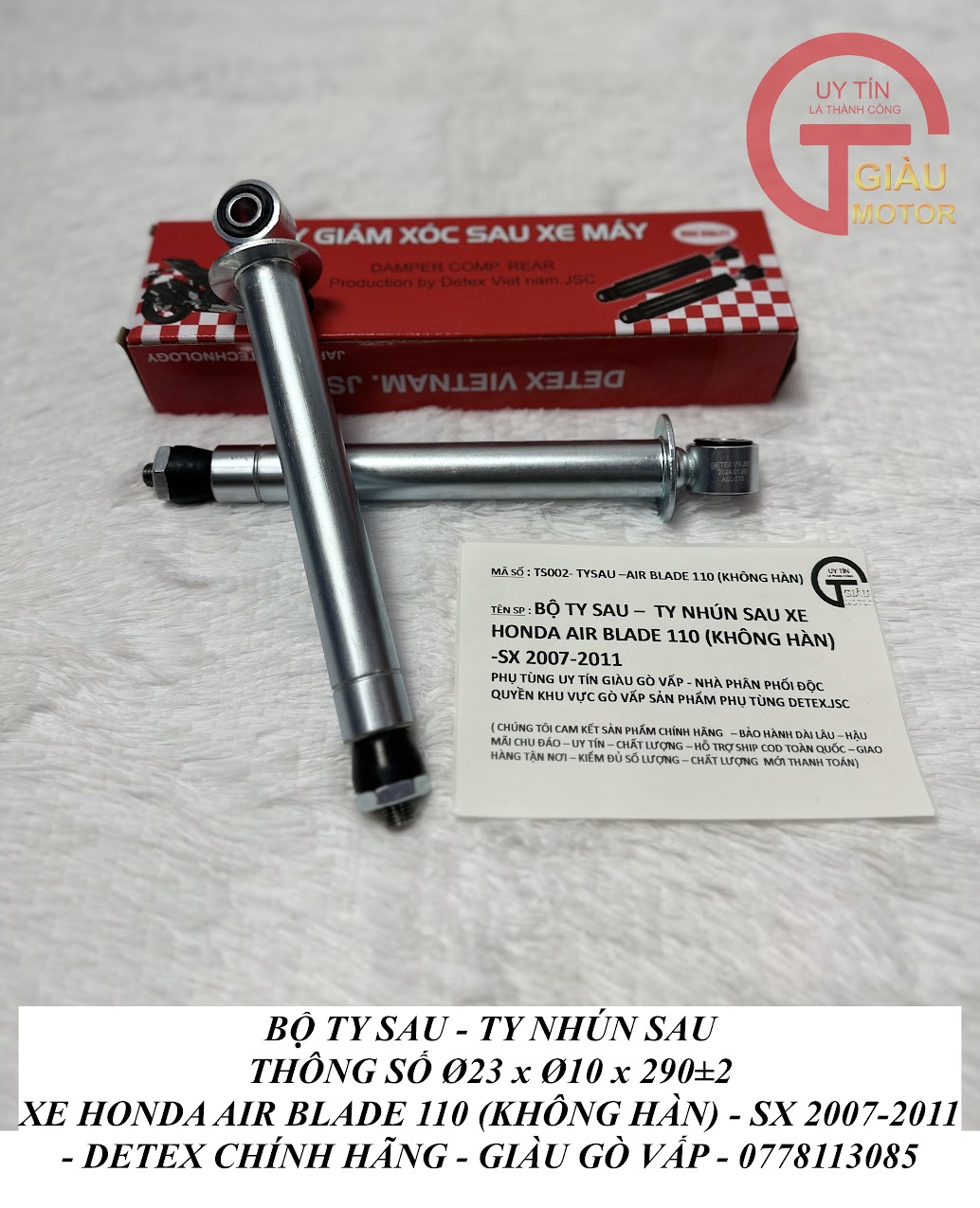 - Qúy khách có thể mua sản phẩm Ty giảm xóc sau xe Air Blade 110 hàng Detex chính hãng tại của hàng Phụ tùng Giàu Gò Vấp.