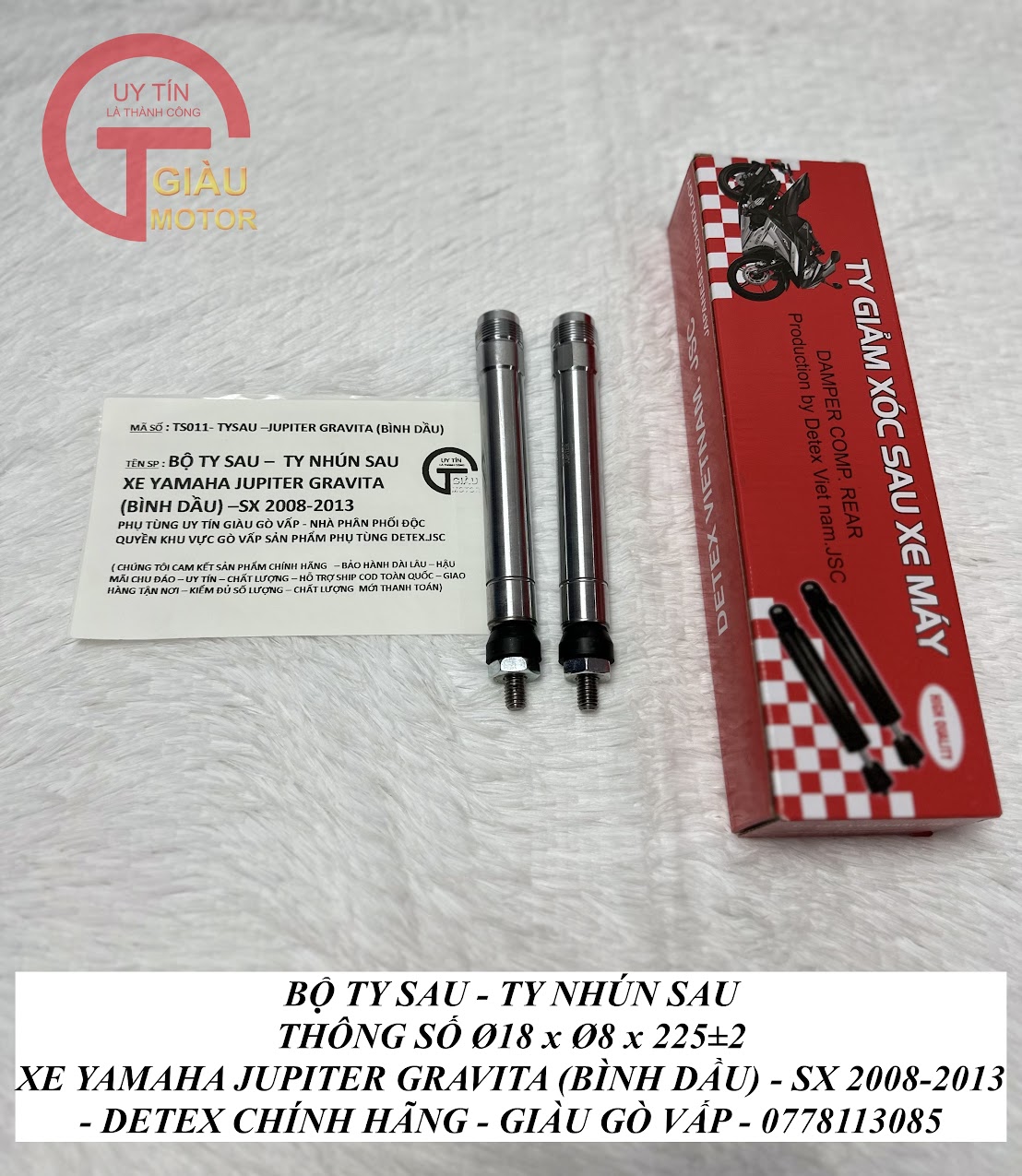 - Qúy khách có thể mua sản phẩm Ty giảm xóc sau xe Jupiter Gravita Bình Dầu hàng Detex chính hãng tại của hàng Phụ tùng Giàu Gò Vấp.