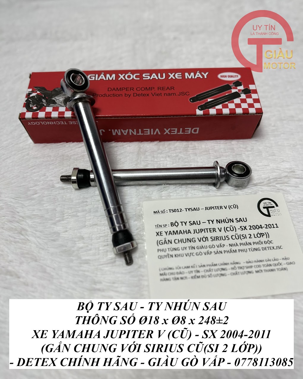 - Tại cửa hàng phụ tùng Giàu Gò Vấp, chúng tôi cung cấp ty phuộc nhún giảm xóc sau xe Yamaha Jupiter V hàng Detex.JSC chính hãng, giá rẻ.