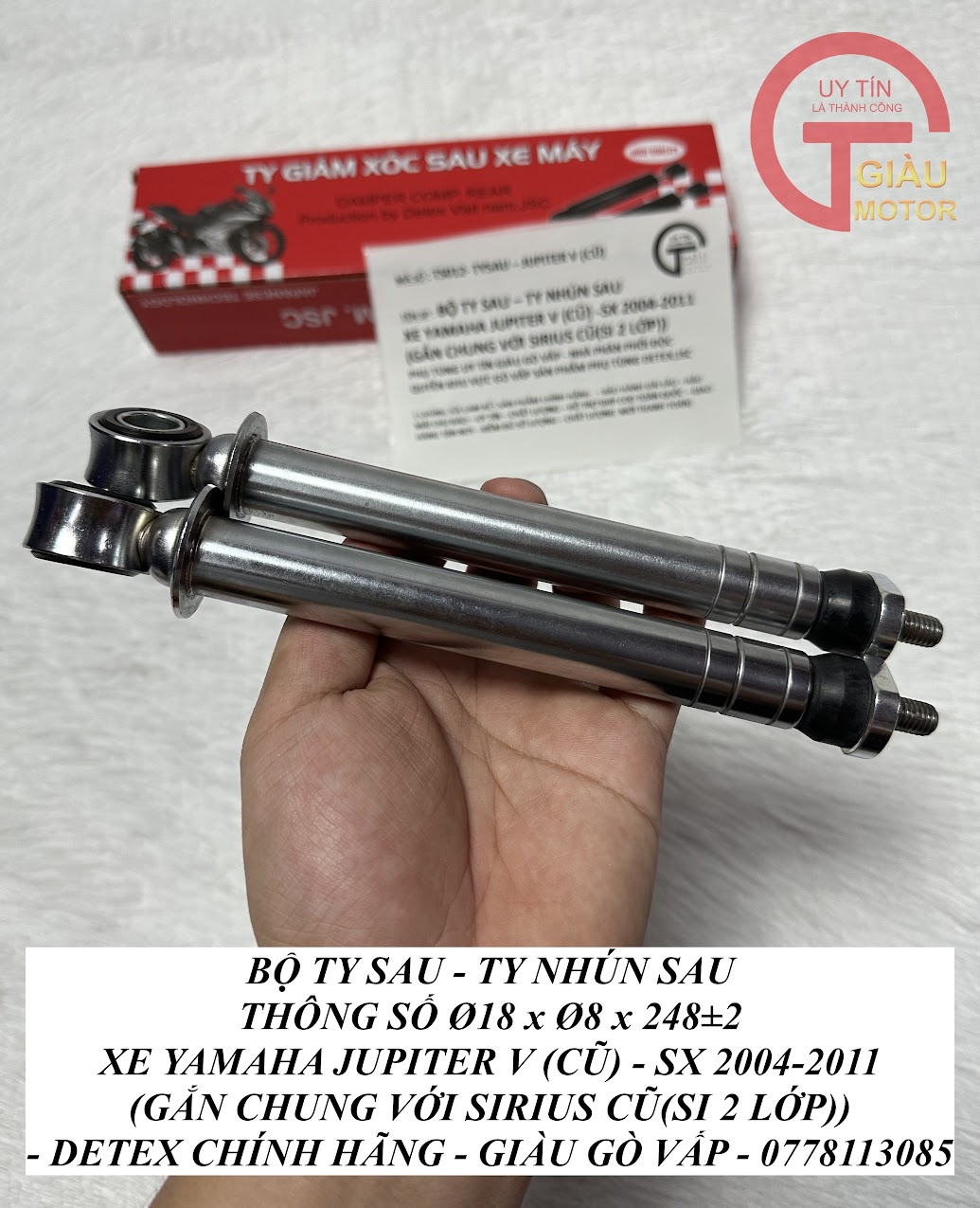 - Qúy khách có thể mua sản phẩm Ty giảm xóc sau xe Jupiter V hàng Detex chính hãng tại của hàng Phụ tùng Giàu Gò Vấp.
