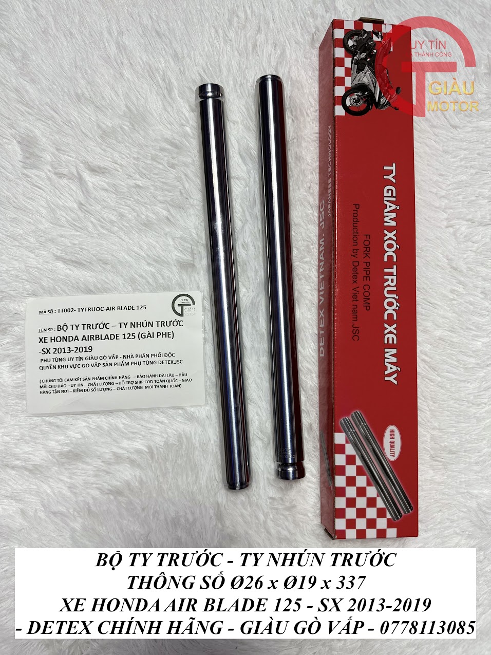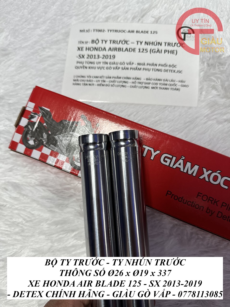 - Qúy khách có thể mua sản phẩm Ty giảm xóc trước xe Air Blade 125 hàng Detex chính hãng tại của hàng Phụ tùng Giàu Gò Vấp.