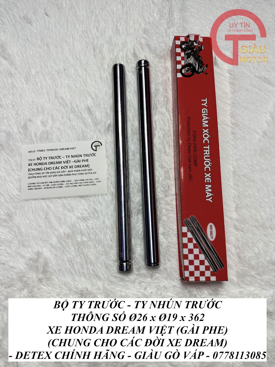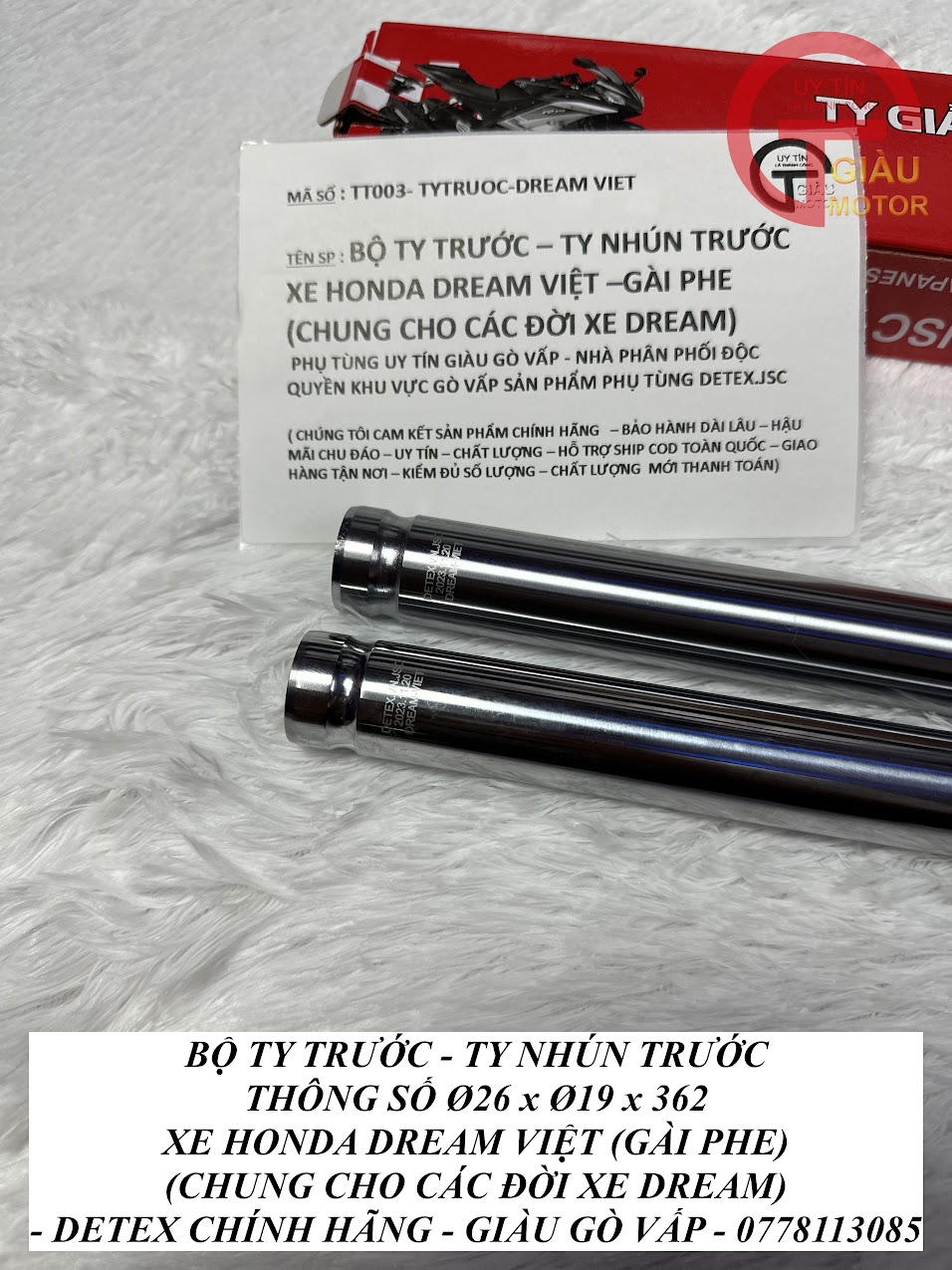 - Qúy khách có thể mua sản phẩm Ty giảm xóc trước xe Dream Việt hàng Detex chính hãng tại của hàng Phụ tùng Giàu Gò Vấp.