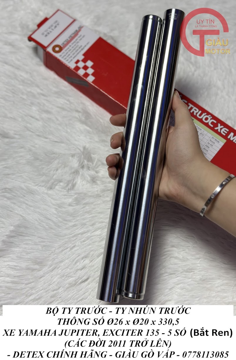 Bạn đang tìm kiếm Ty giảm xóc trước cho dòng xe Yamaha Jupiter và Exciter 135? Sản phẩm Detex.JSC chính hãng đang có mặt tại Giàu Gò Vấp với chất lượng vượt trội, giúp xe vận hành êm ái, ổn định trên mọi cung đường. Hãy lựa chọn ngay để nâng cao trải nghiệm lái xe và đảm bảo an toàn tuyệt đối.