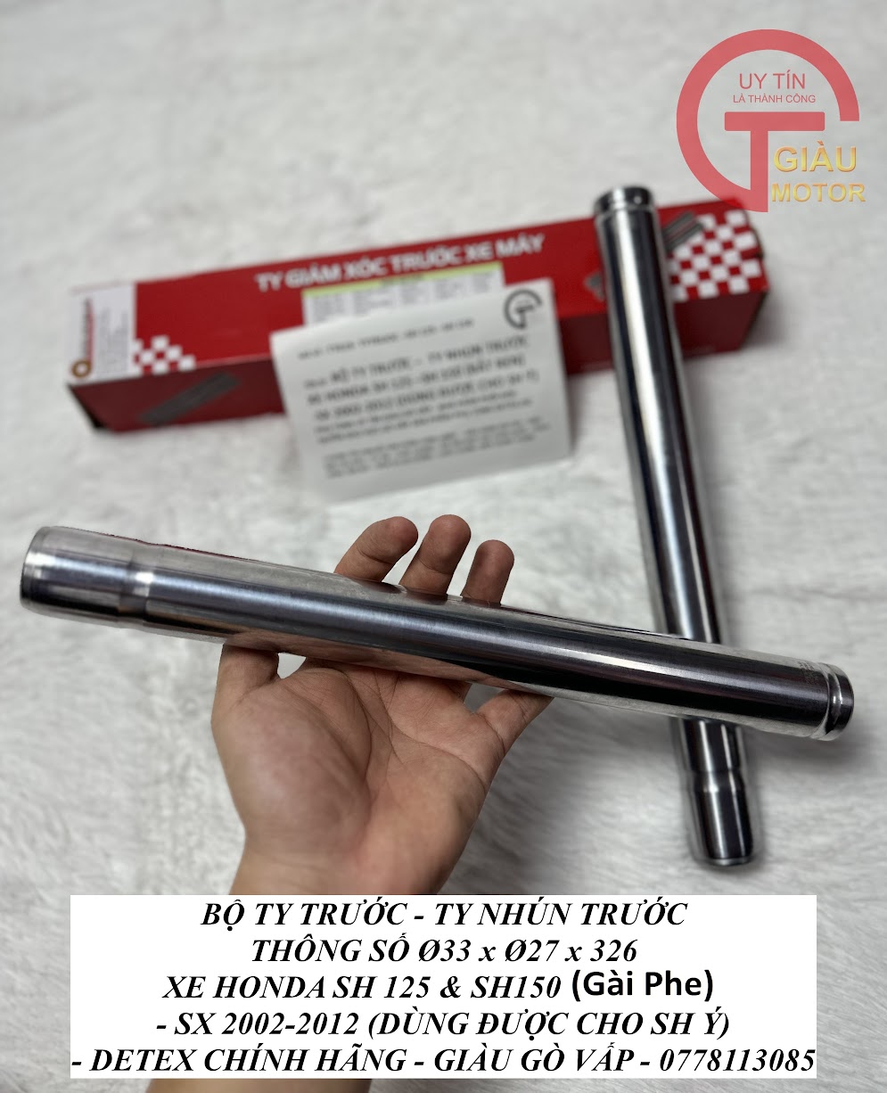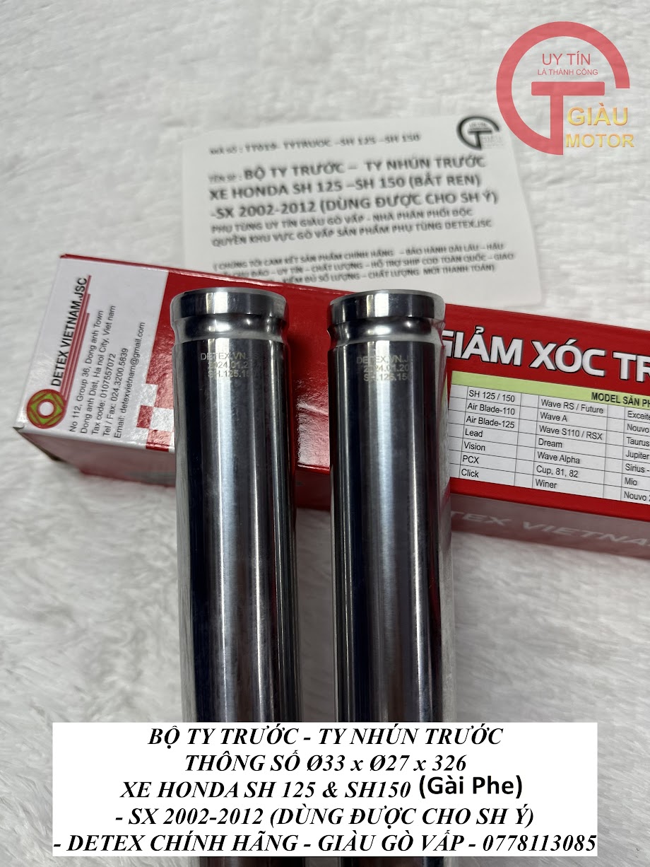 - Qúy khách có thể mua sản phẩm Ty giảm xóc trước xe SH 125, SH150 hàng Detex chính hãng tại của hàng Phụ tùng Giàu Gò Vấp.