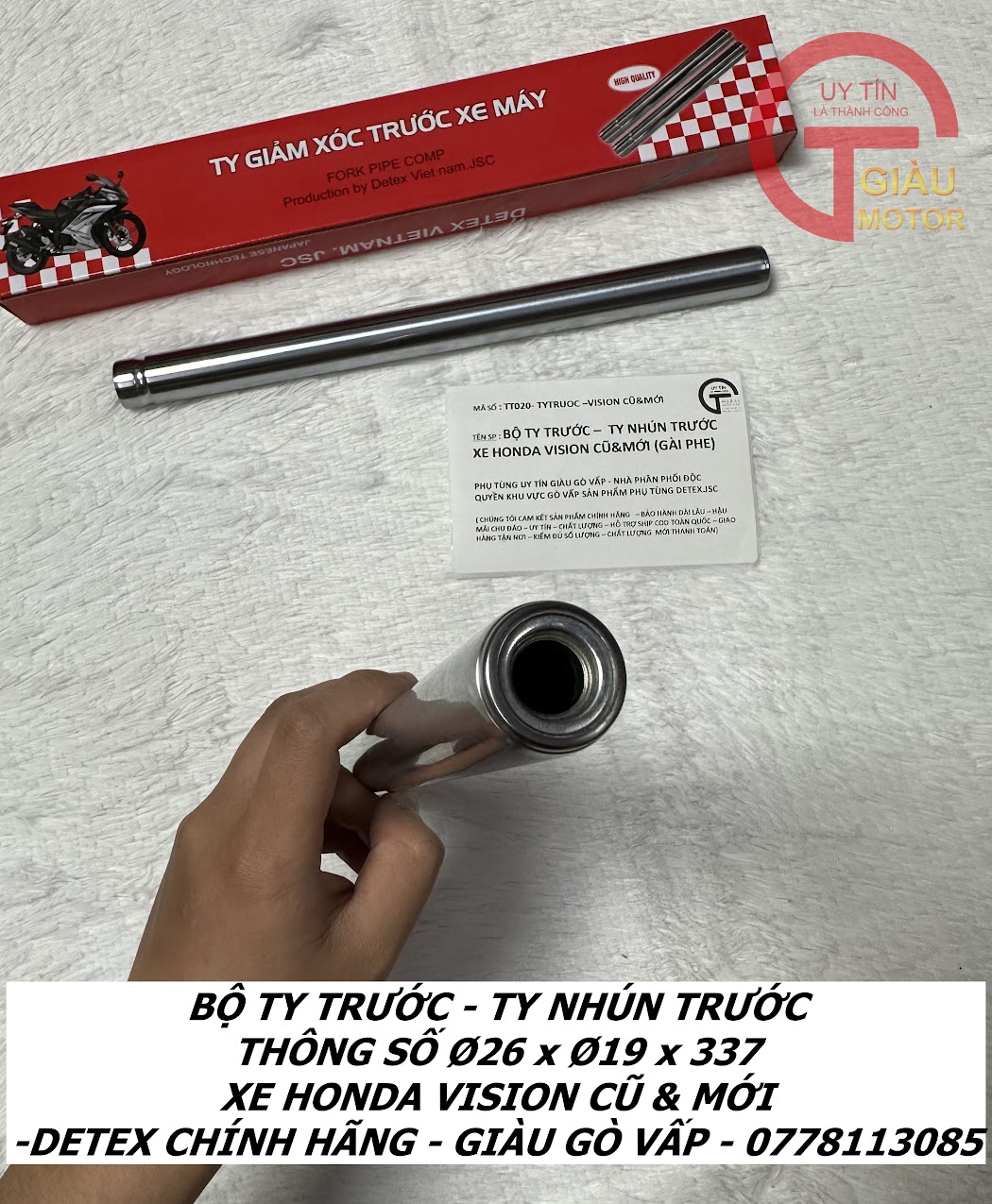 - Qúy khách có thể mua sản phẩm Ty giảm xóc trước xe Vision hàng Detex chính hãng tại của hàng Phụ tùng Giàu Gò Vấp.