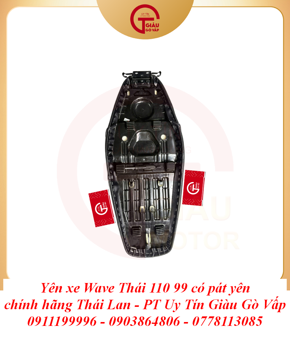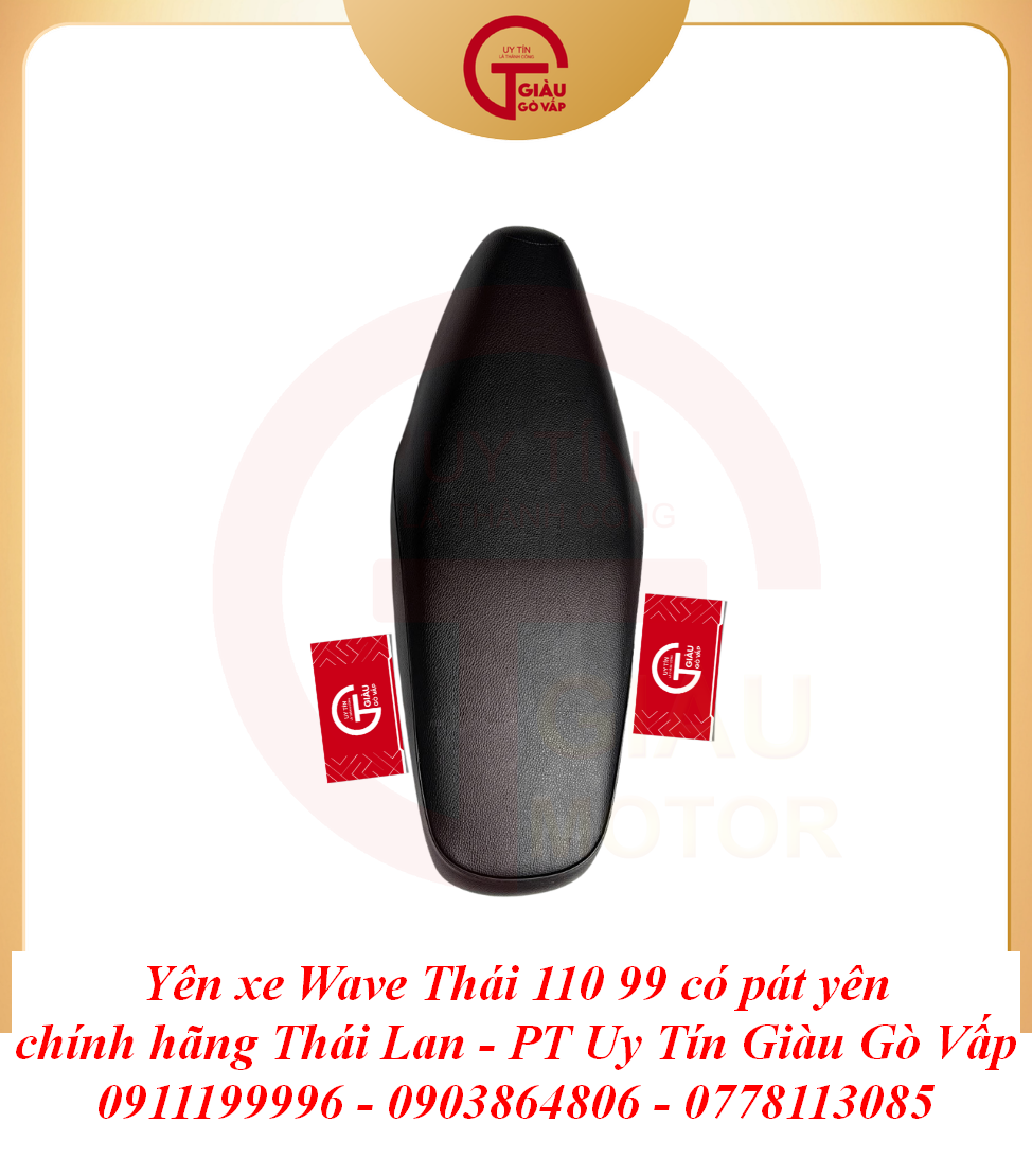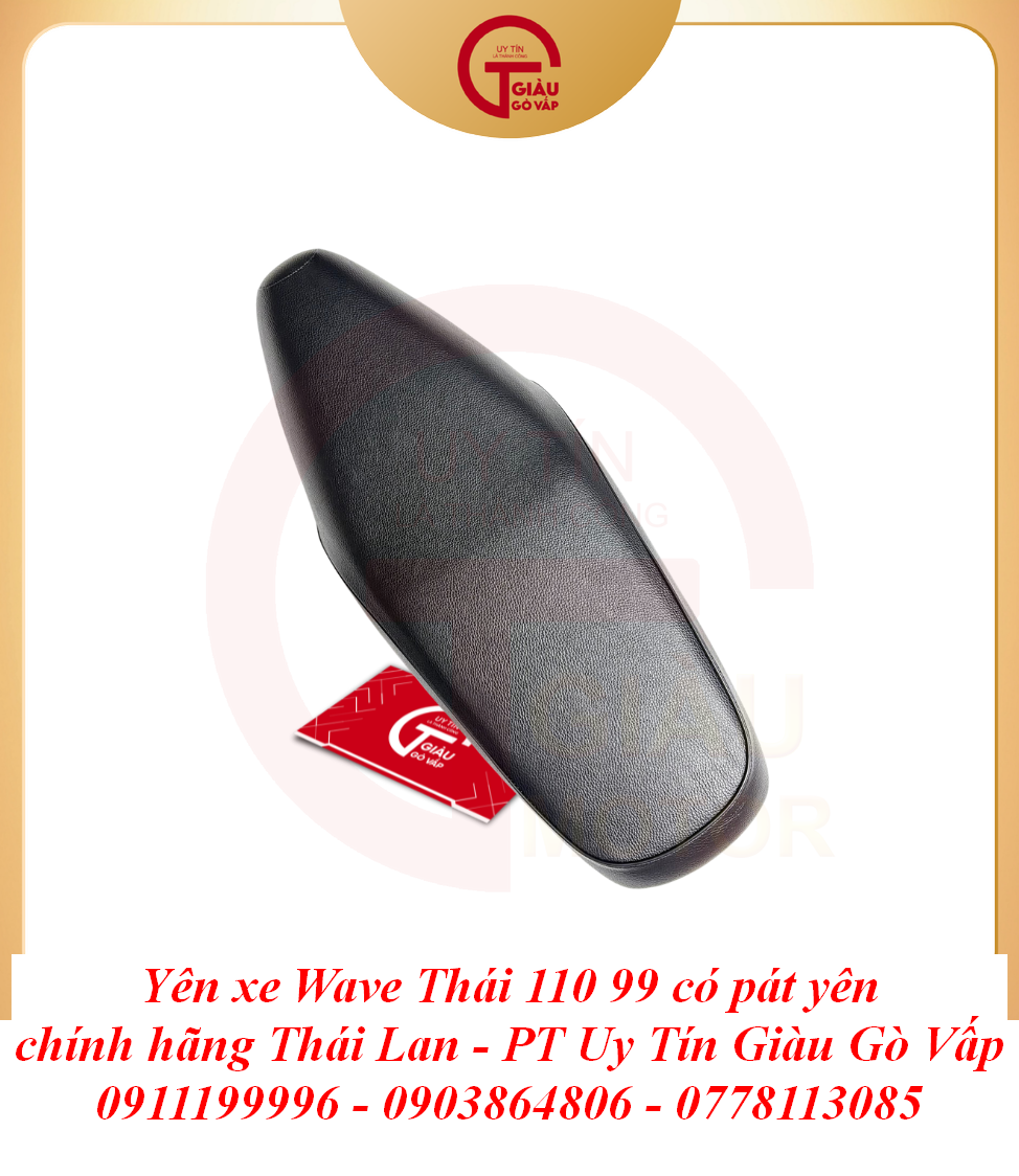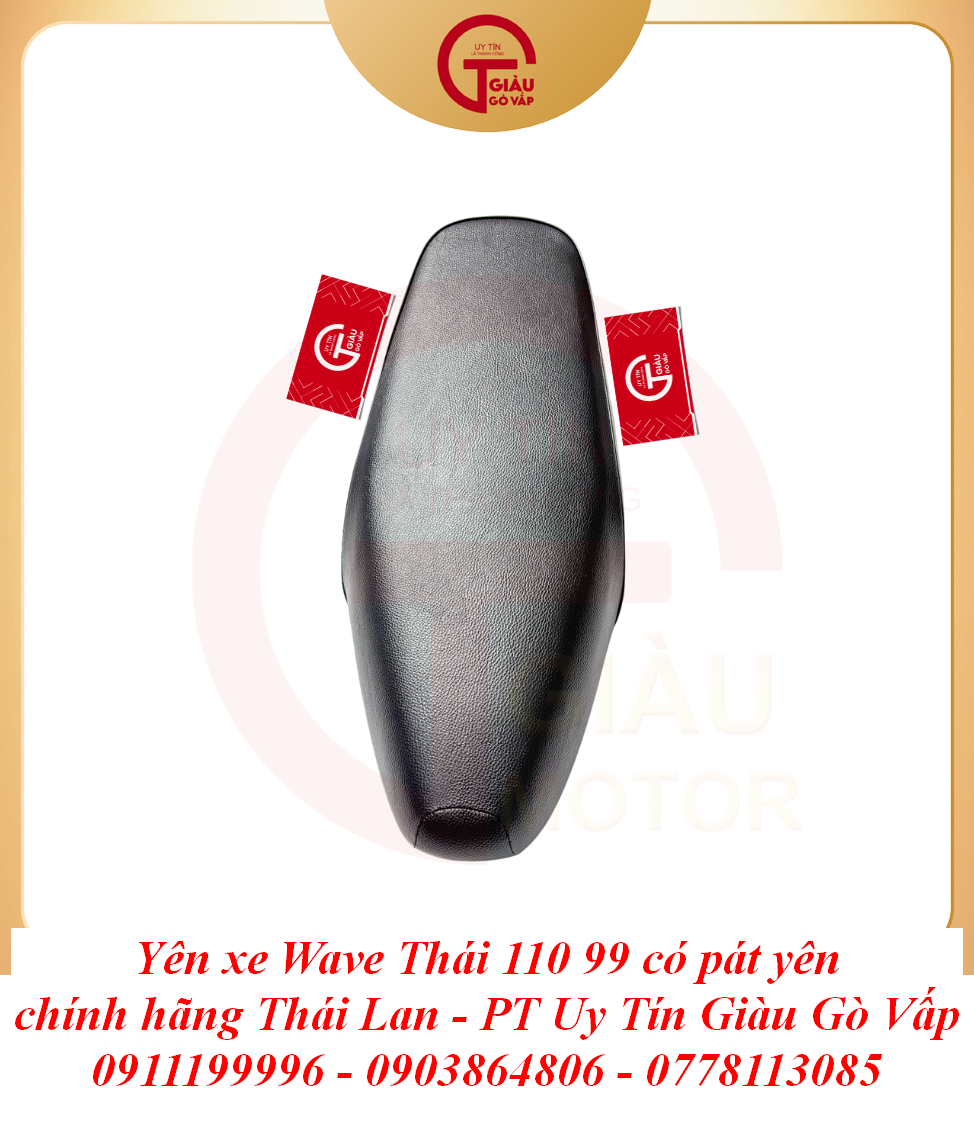 Đừng để chiếc yên xe cũ kỹ làm giảm đi niềm vui trên mỗi chuyến đi của bạn! Hãy đến ngay Giàu Gò Vấp – cửa hàng phụ tùng xe máy uy tín hàng đầu tại TP. Hồ Chí Minh, chuyên cung cấp Yên Xe Wave Thái 110 99 Có Pát Yên Chính Hãng Thái Lan. Chúng tôi cam kết mang lại cho bạn sự êm ái, bền bỉ và vẻ đẹp chuẩn "zin" Thái Lan như mới xuất xưởng!